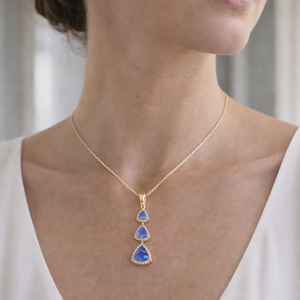9K Gold 1.59 Ct Trillion Tanzanite Pendant