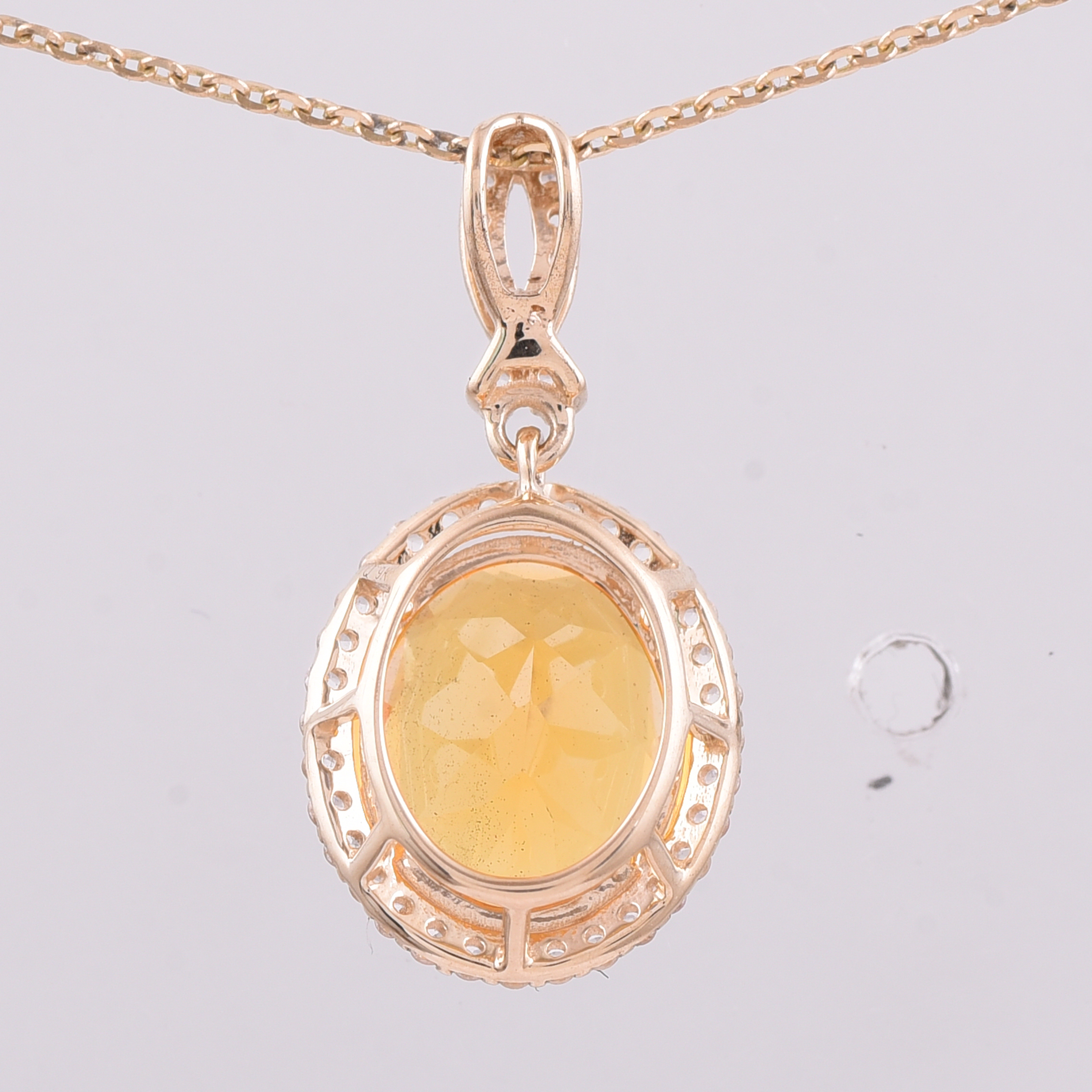 9K Gold 2.03 Ct Oval Br.Fire Opal Pendant