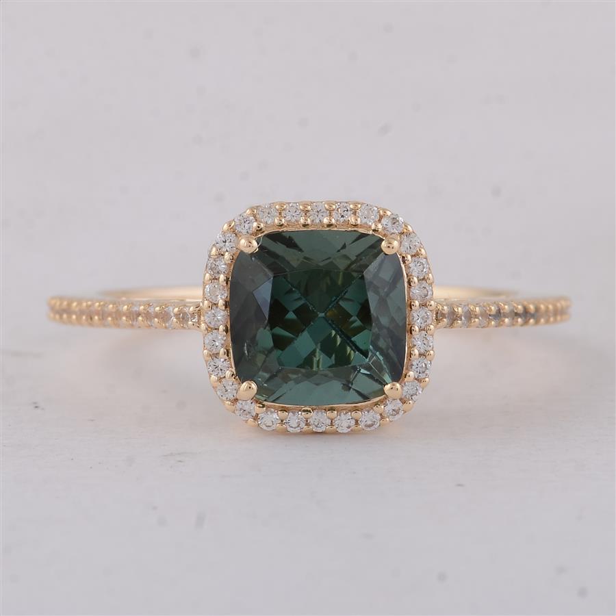 9K Gold 2.14 Ct Cushion Tourmaline Ring 7 US Ring Size