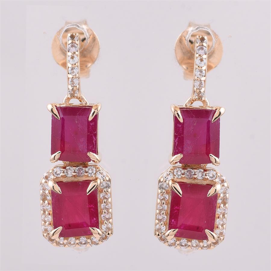 9K Gold 2.73 Ct Octagon Ruby Earrings