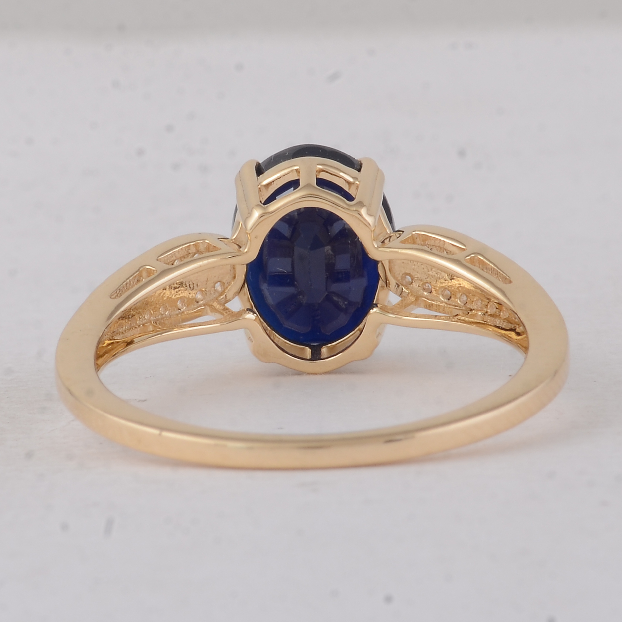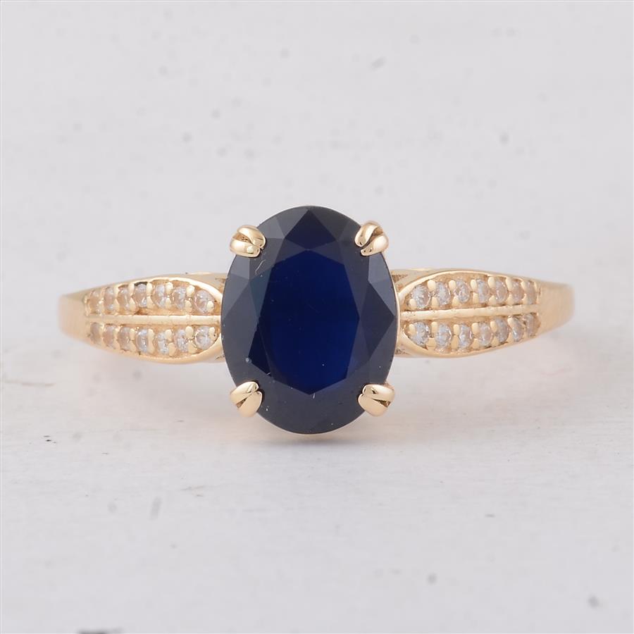 9K Gold 2.75 Ct Oval Sapphire Ring 7 US Ring Size