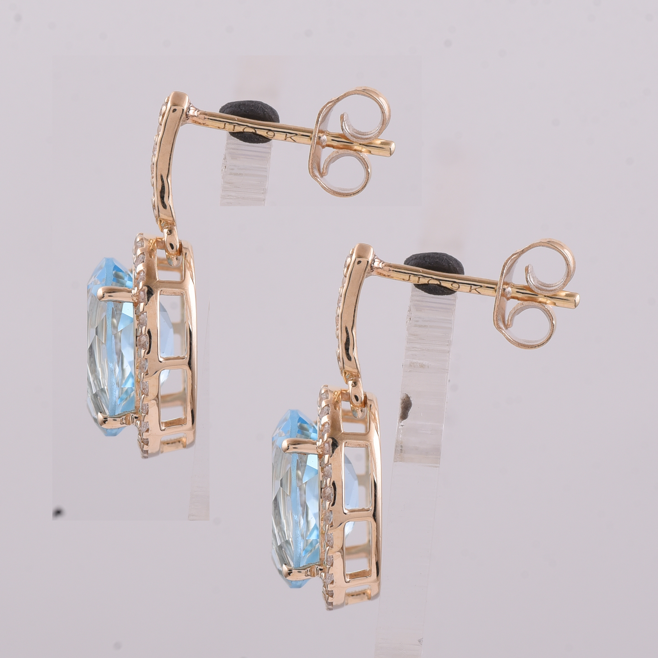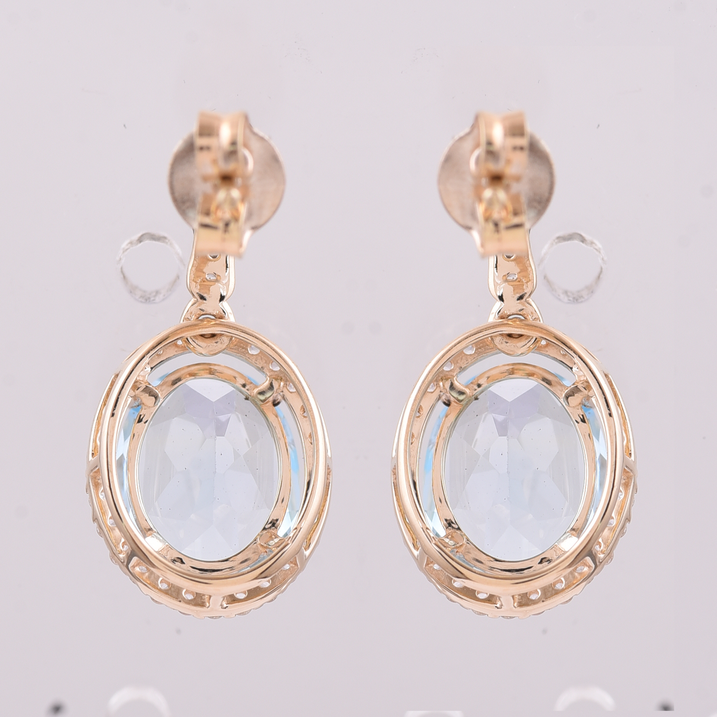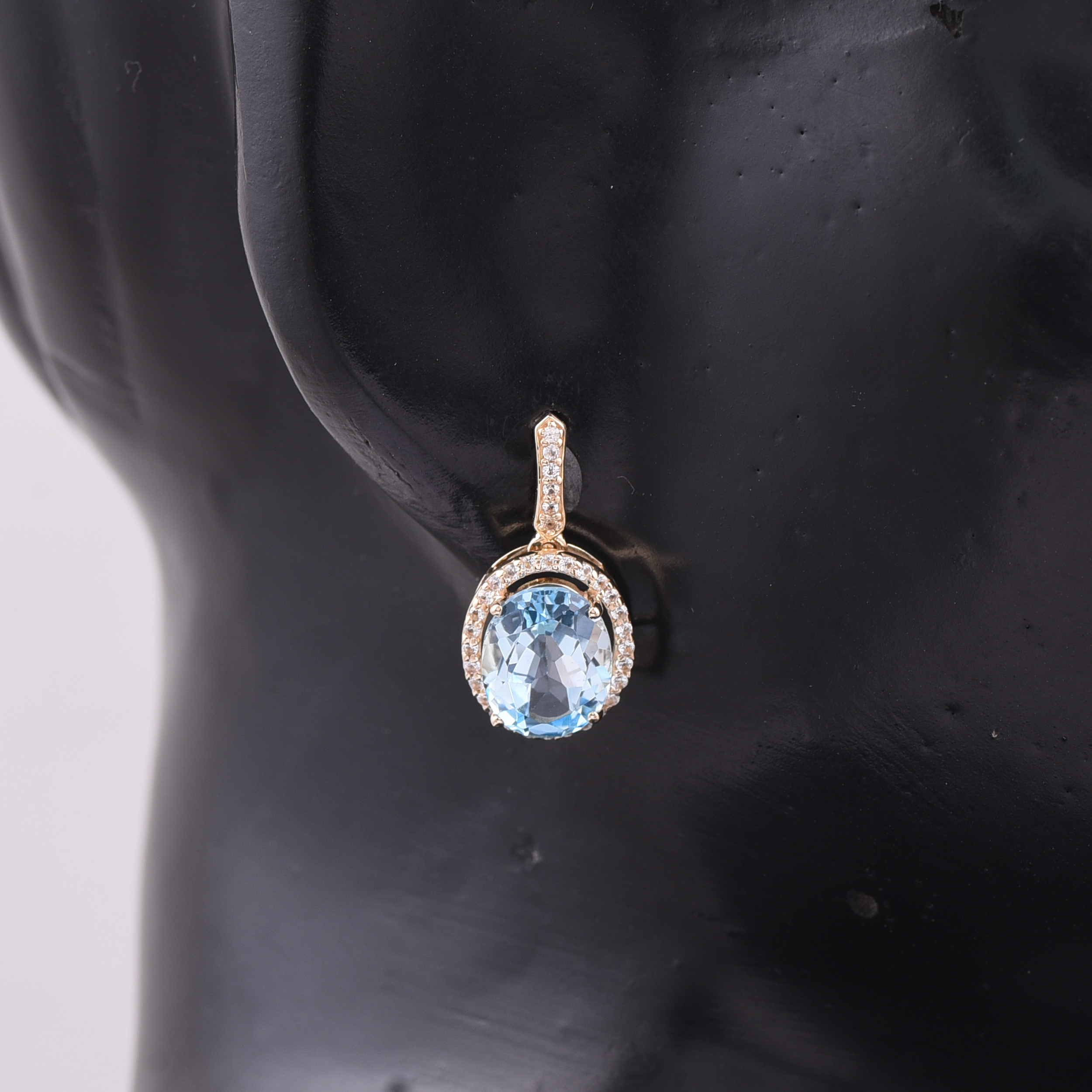 9K Gold 4.75 Ct Oval Blue Topaz Earrings