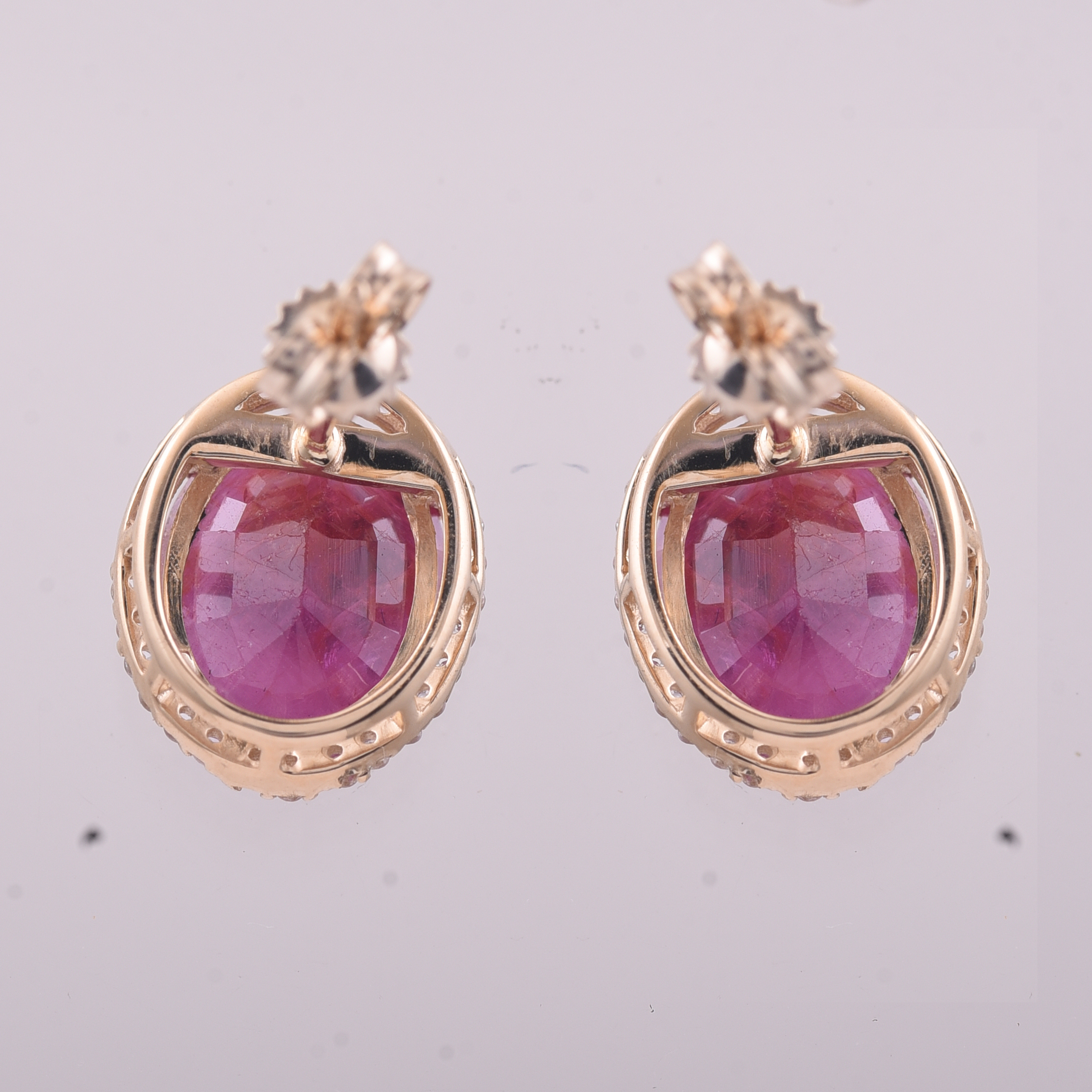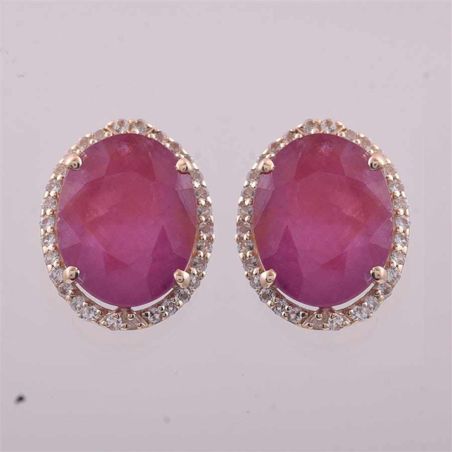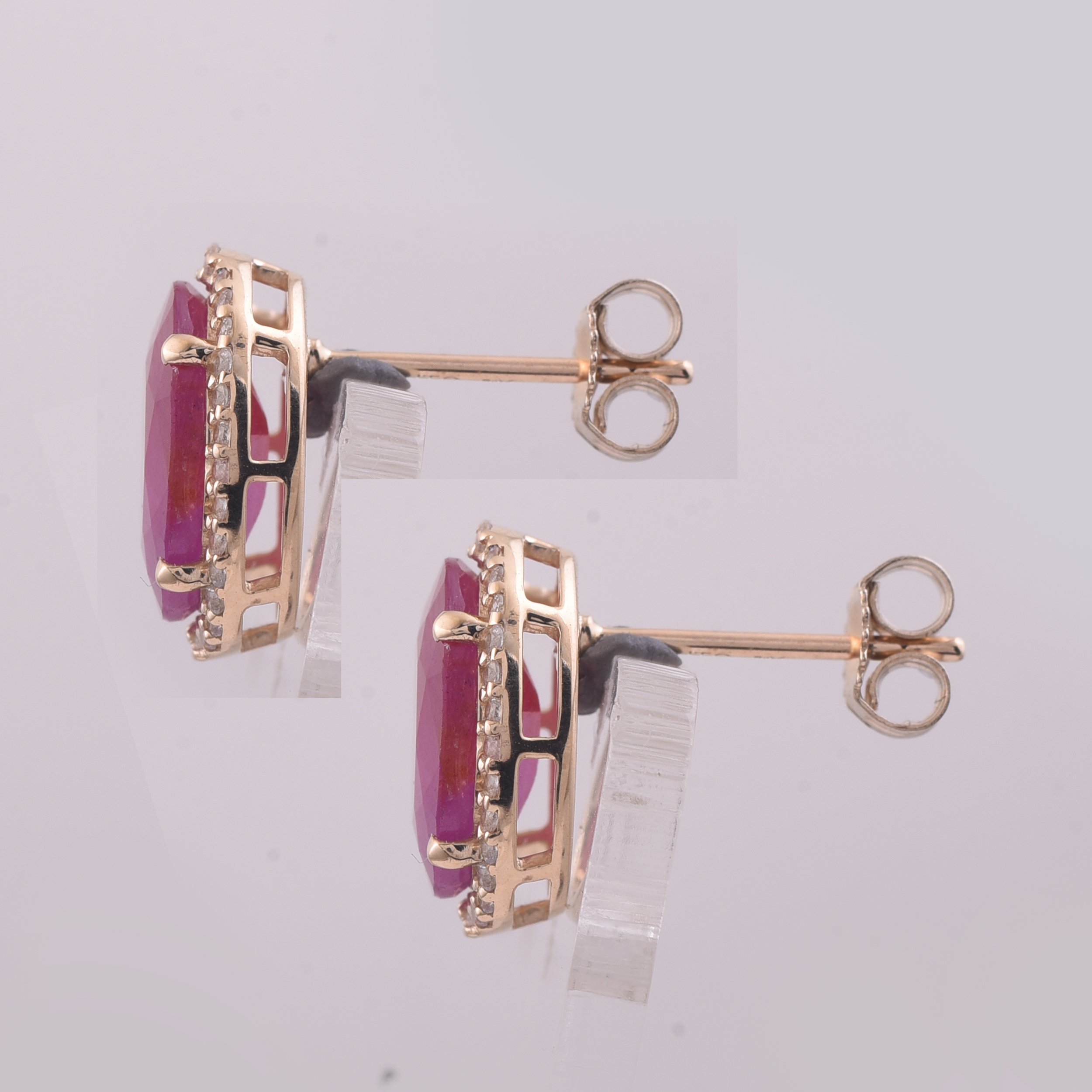 9K Gold 5.22 Ct Oval Ruby Earrings
