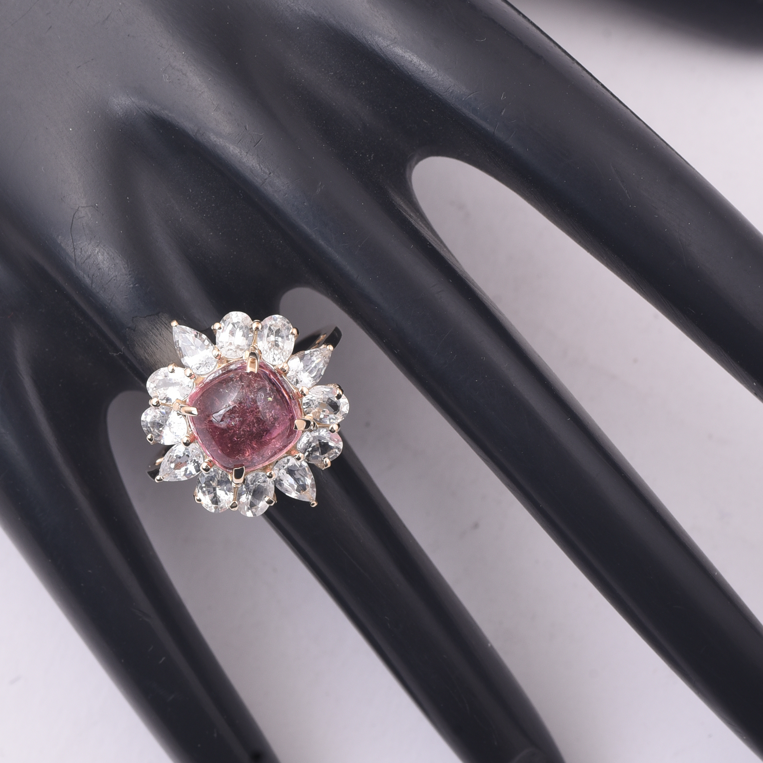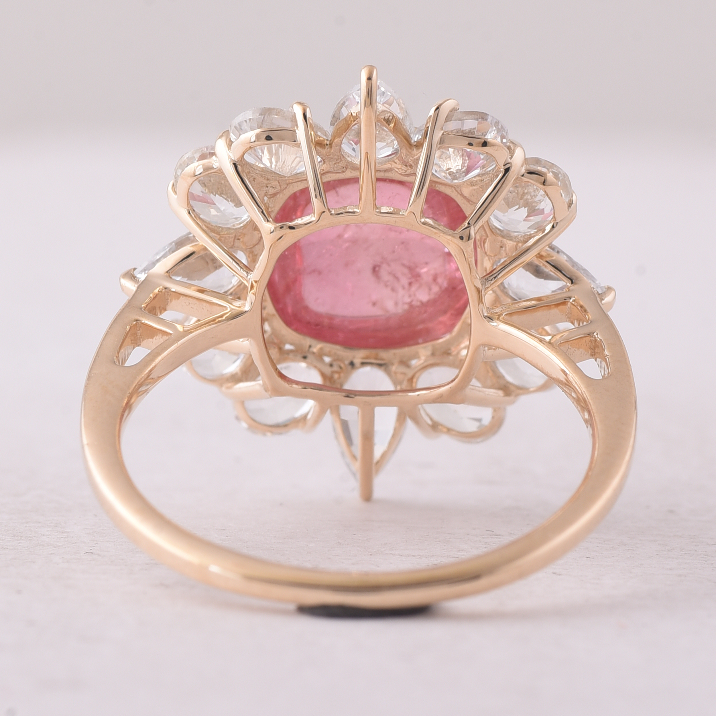 9K Gold 6.27 Ct Cushion Tourmaline Ring 7 US Ring Size