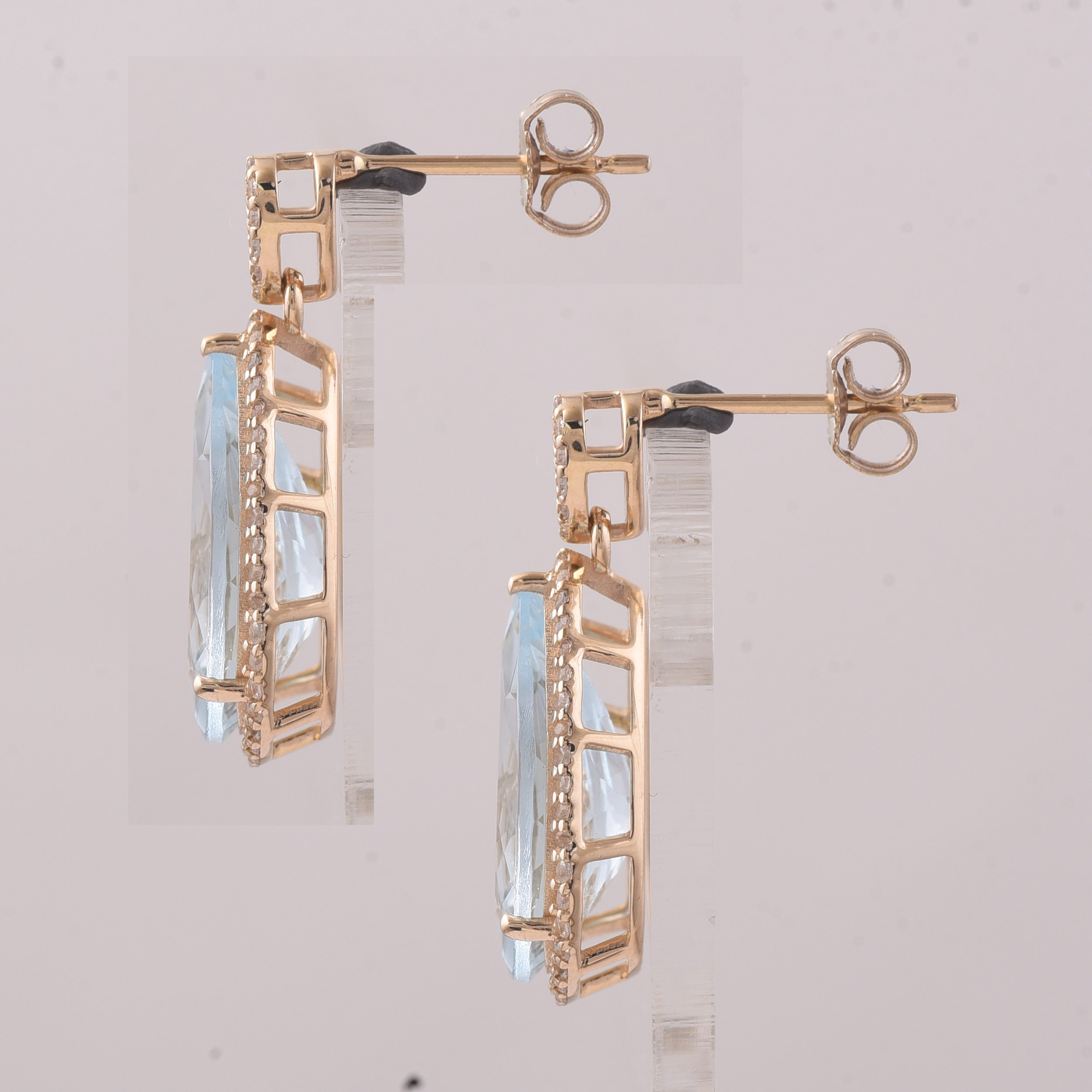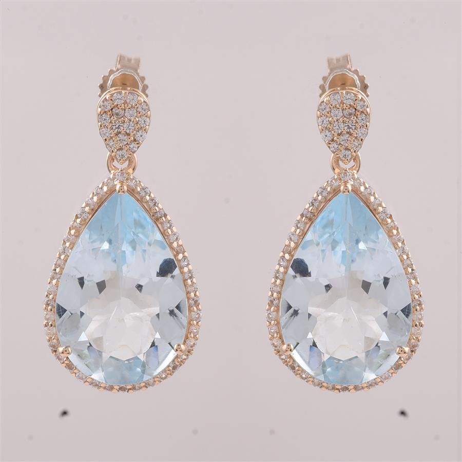 9K Gold 8.07 Ct Pear Aquamarine Earrings