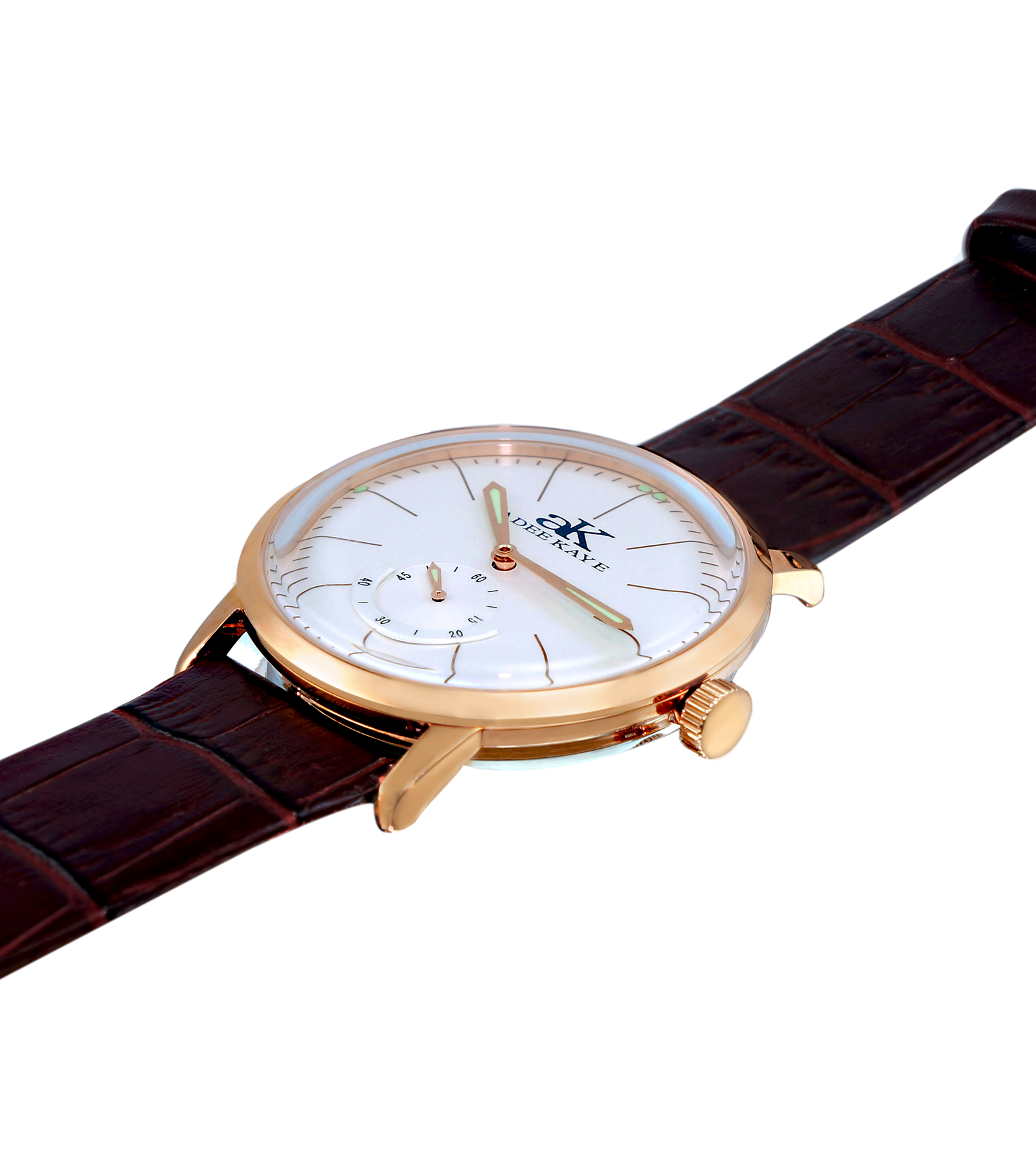 ADEE KAYE 21 JEWELS MECHANICAL , DOME CRYSTAL AND GENUINE LEATHER BAND, AK9044-MRGSV_LB, (MSRP: $600.00)