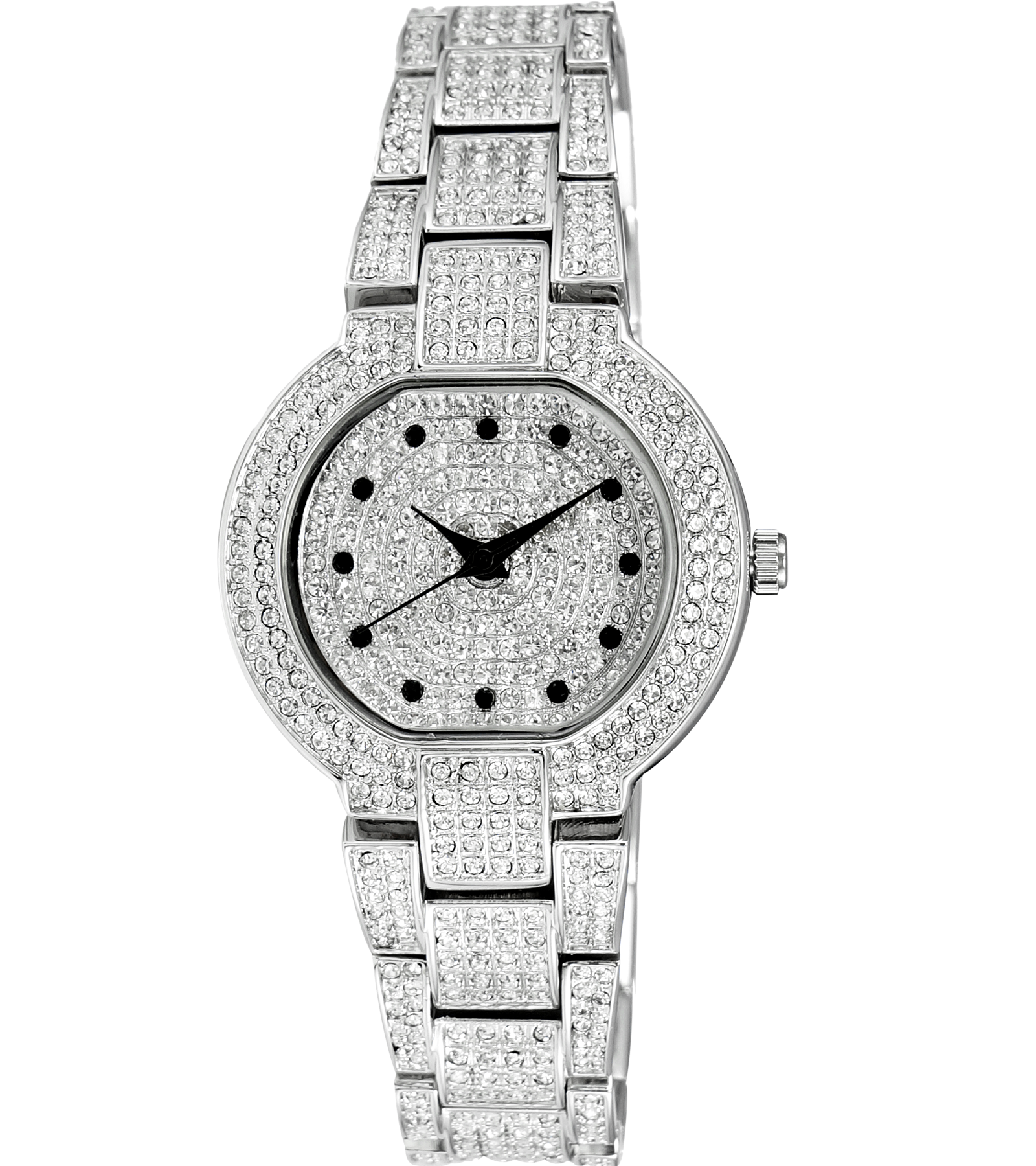 DIAL BRASS, RHODIUM PLATED, SILVER TONE ACCENTED WITH (164 PCS AUSTRIAN STONE)