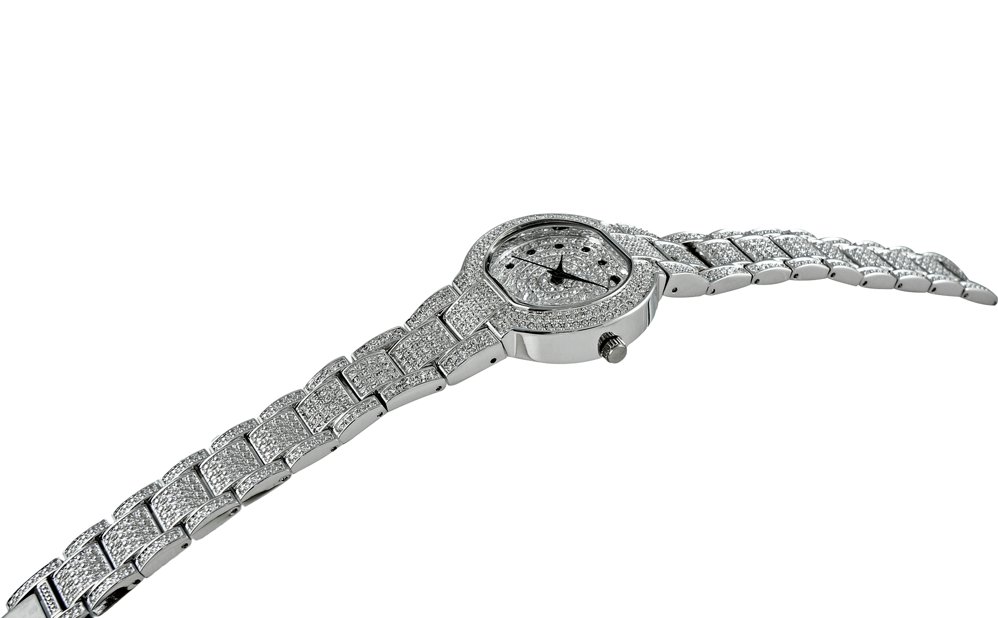 CASE MATERIAL BRASS, RHODIUM PLATED, SILVER TONE ACCENTED WITH (144 PCS AUSTRIAN STONE)