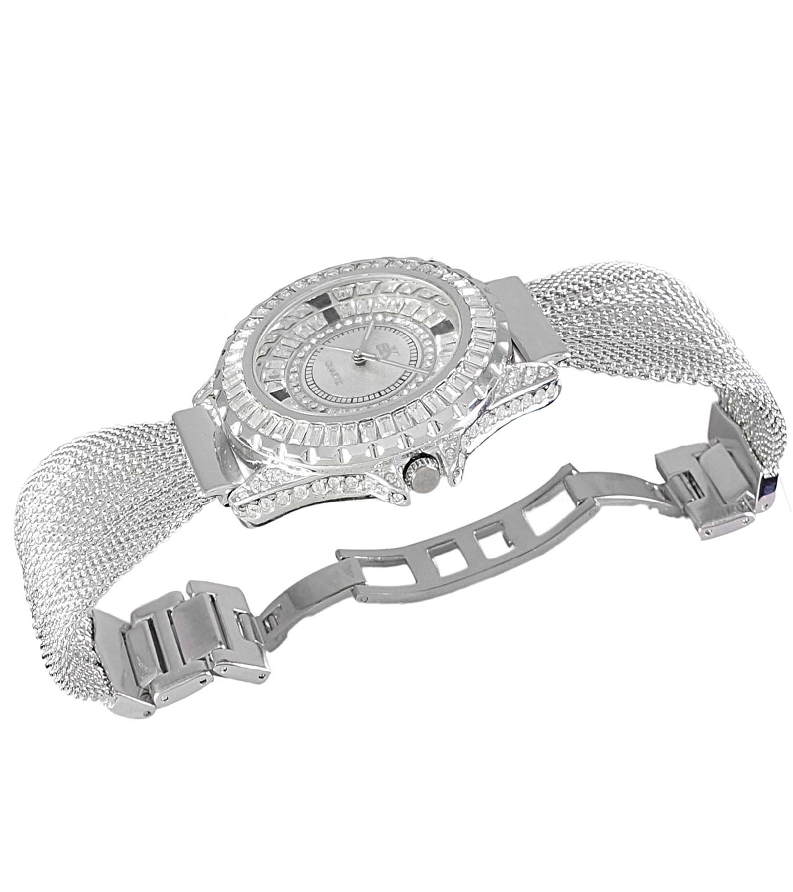 Adee Kaye MID-SIZE, Silvertone Meash-band , Sunray dial, 183pcs setting stone, AK2727-S, MSRP: $345.00