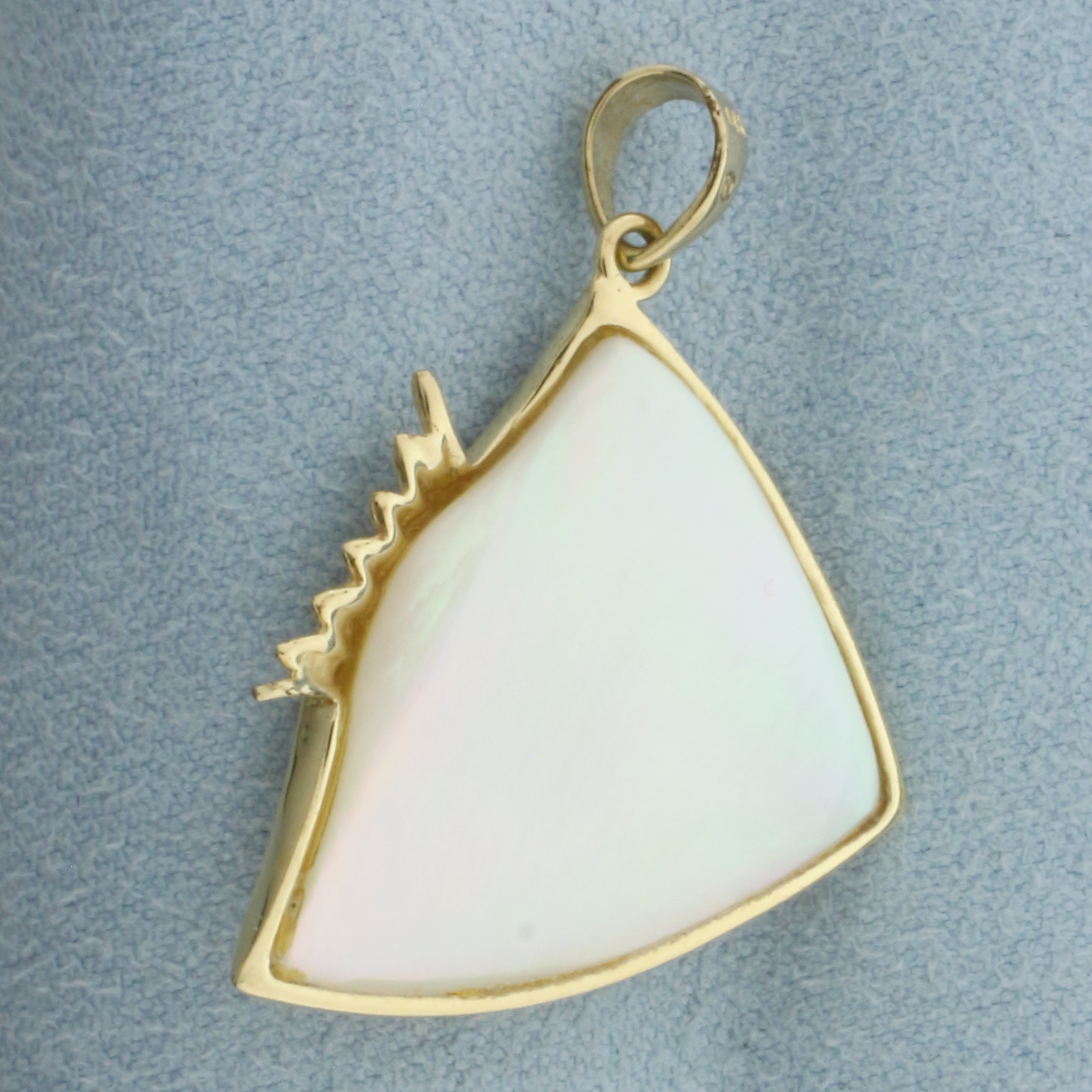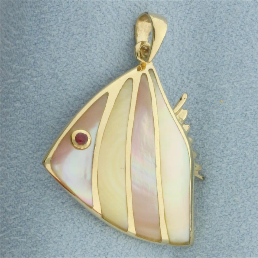 Angelfish Pendant with Mother of Pearl Inlay and Ruby Eye in 14k Yellow Gold