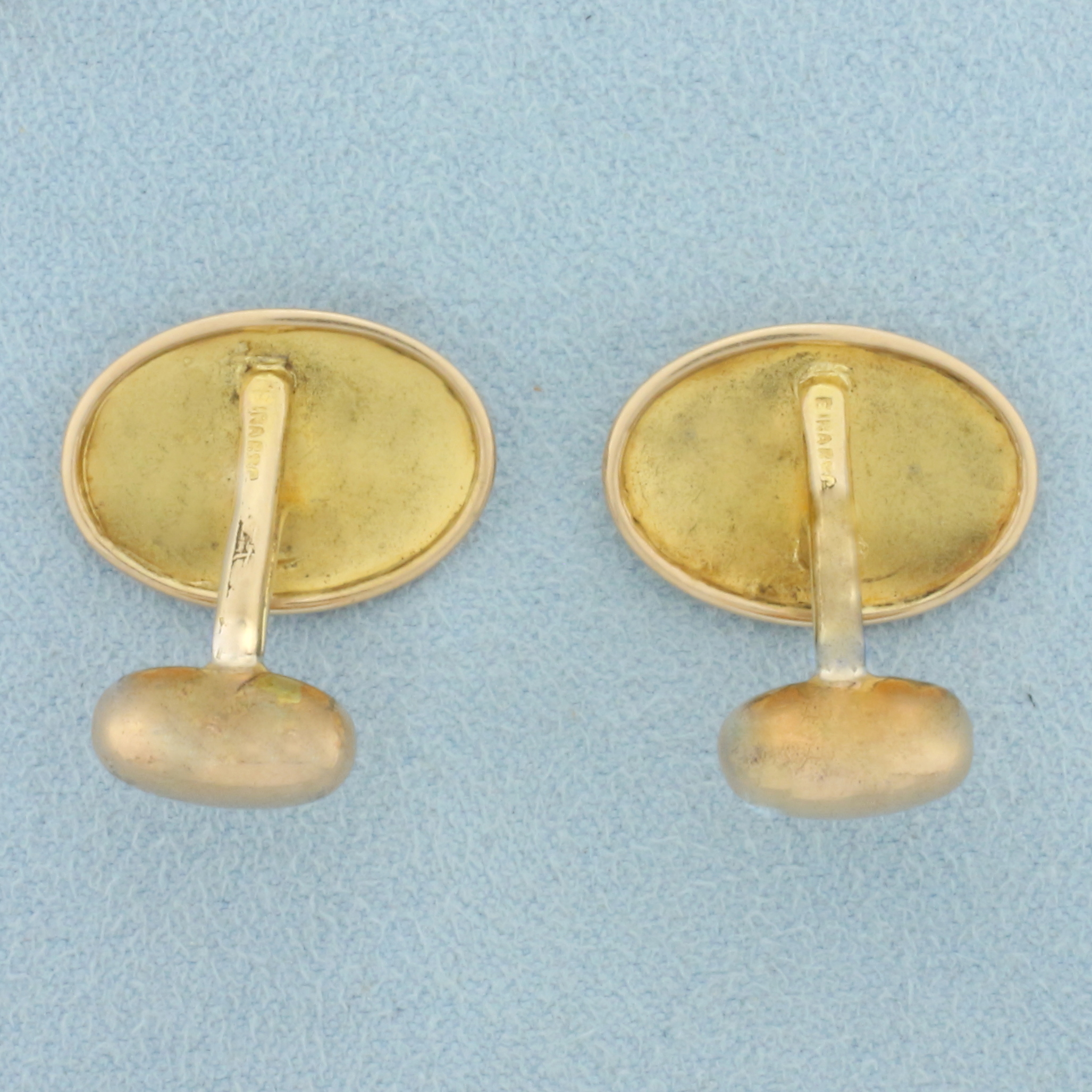 Antique M or W Hand Engraved Cufflinks in 10k Rose Gold