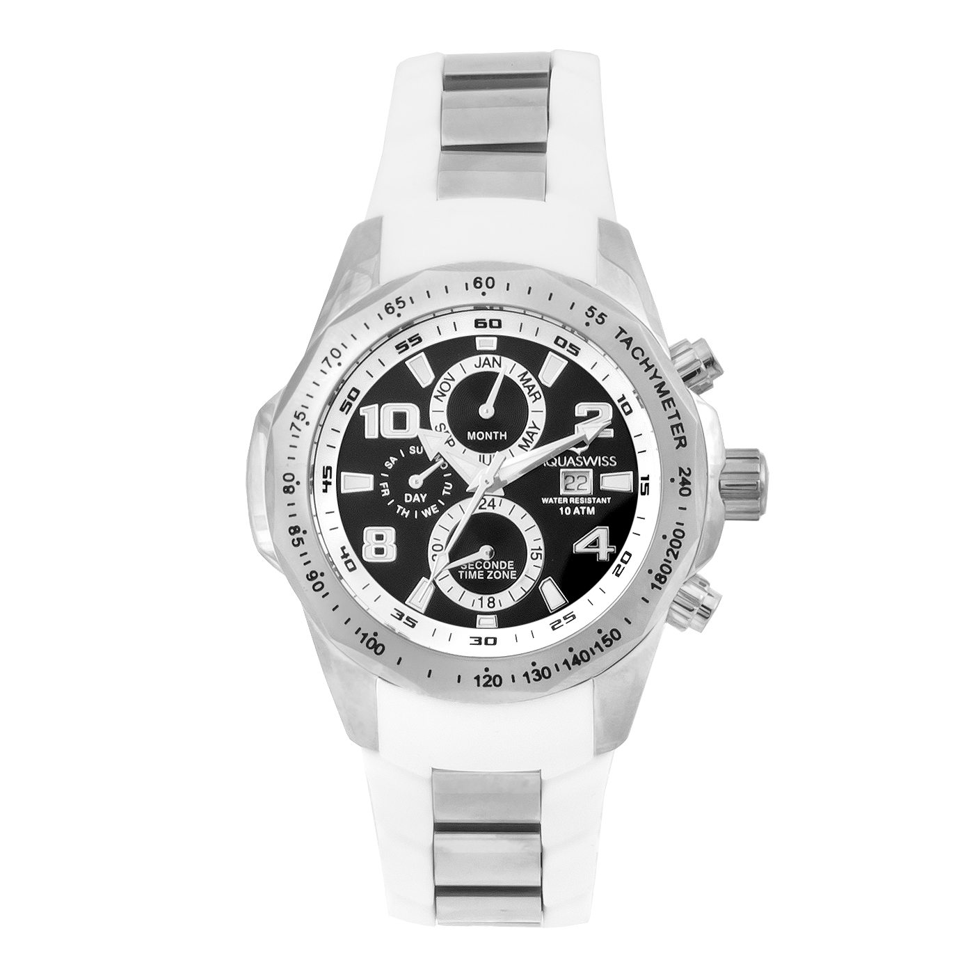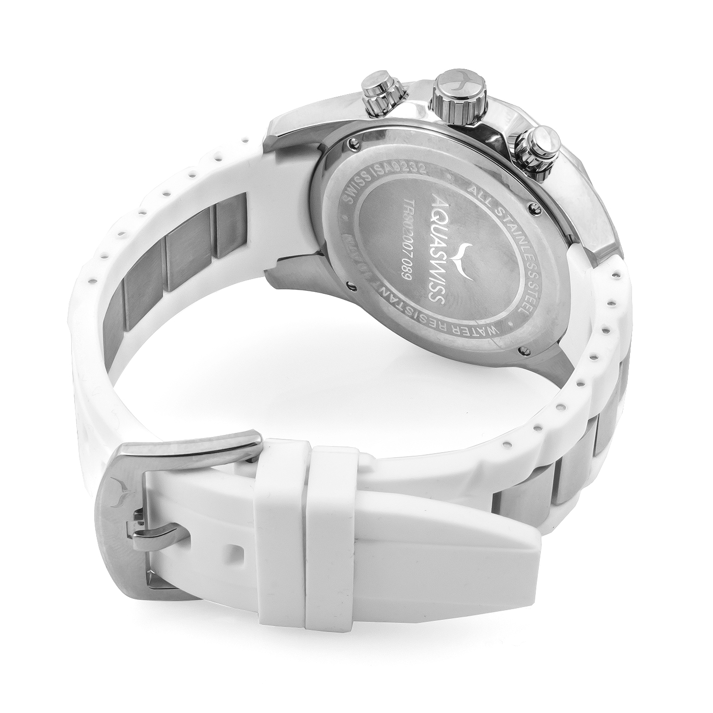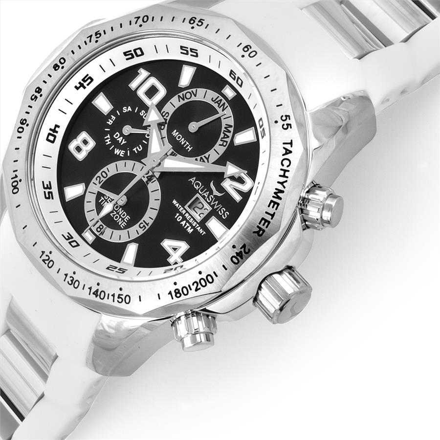 Get a great deal with this online auction for AQUASWISS watch presented by Property Room. This fine AQUASWISS watch is part of a special inventory blowout! We assure you that this product was handled with great care and this will not and does not effect the high quality of this product or warranty in anyway. Introducing the AQUASWISS Collection, stunning watches that can be worn for sport, casual, or dress. All AQUASWISS timepieces are water resistant up to 10 ATM (330 feet). All AQUASWISS watches come with Swiss movements with or without chronograph. AQUASWISS watches are brand new and come in its original box with owners manual and 2 year warranty. AQUASWISS watches are truly high quality timepieces. All weights, measurements and colors are approximate and may vary slightly from the listed dimensions or as seen in the image. All pictures are magnified to show the smallest of details. Please, refer to the item description for actual weight and size evaluation.