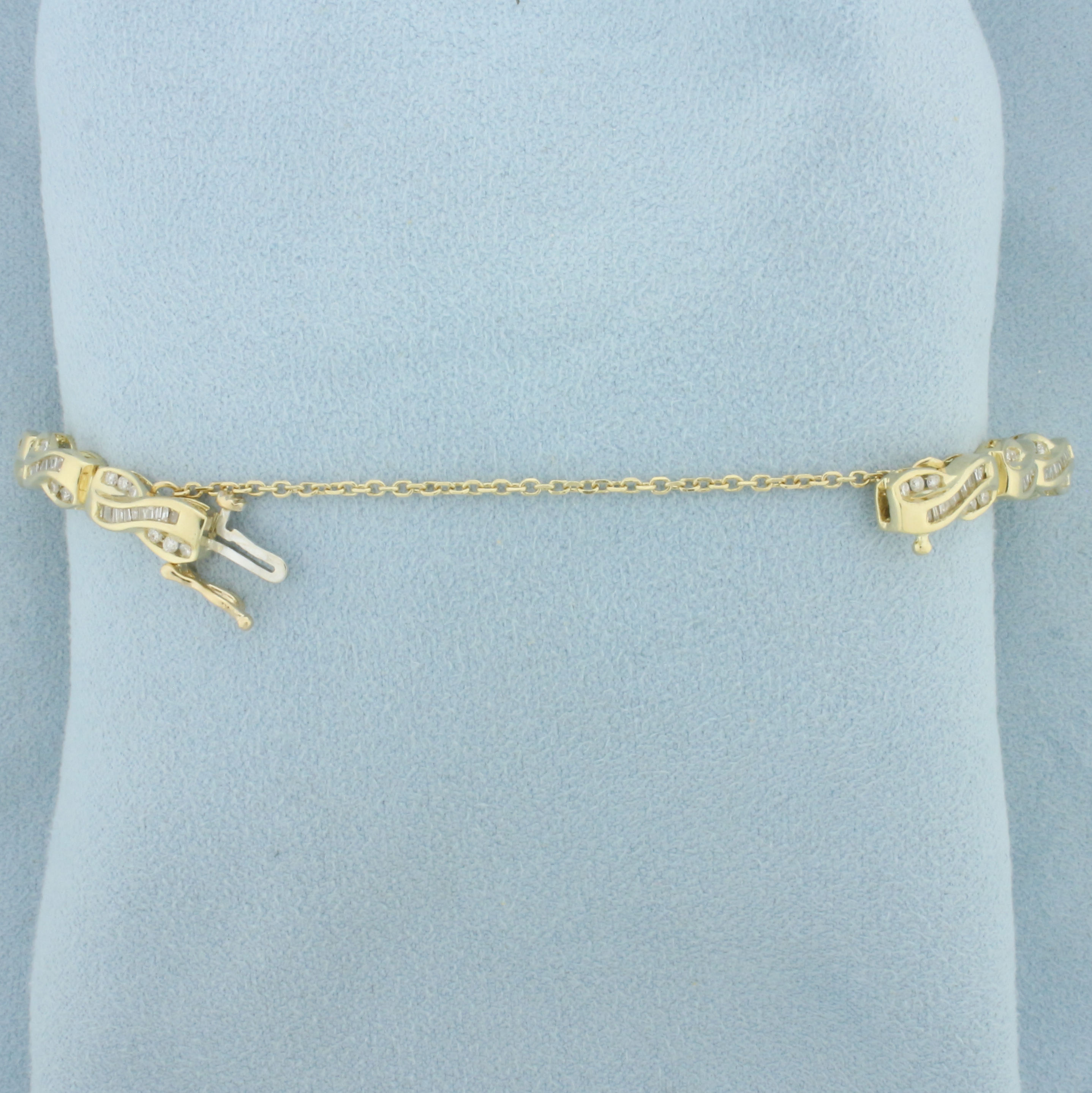 Baguette and Round Diamond Tennis Bracelet in 14k Yellow Gold