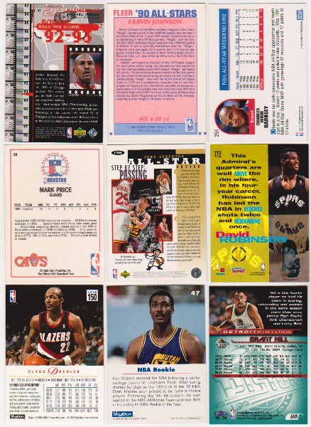 This is a collection of 9 different basketball cards of star and Hall of Fame players.  This lot includes Michael Jordan, Earvin "Magic" Johnson, Charles Barkley, David Robinson, John Stockton, Mark Price, Grant Hill, Karl Malone, and Clyde Drexler.  These are mostly in the EX-MT to Near Mint condition range.  This is a nice lot featuring a nice mix of stars.
