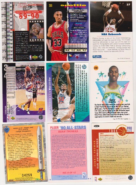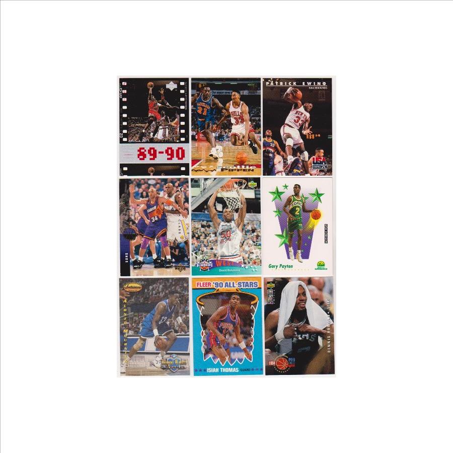 This is a collection of 9 different basketball cards of star and Hall of Fame players.  This lot includes Michael Jordan, Scottie Pippen, Patrick Ewing, Charles Barkley, David Robinson, Gary Payton, Alonzo Mourning, Isiah Thomas, and Dennis Rodman.  These are mostly in the EX-MT to Near Mint condition range.  This is a nice lot featuring a nice mix of stars.