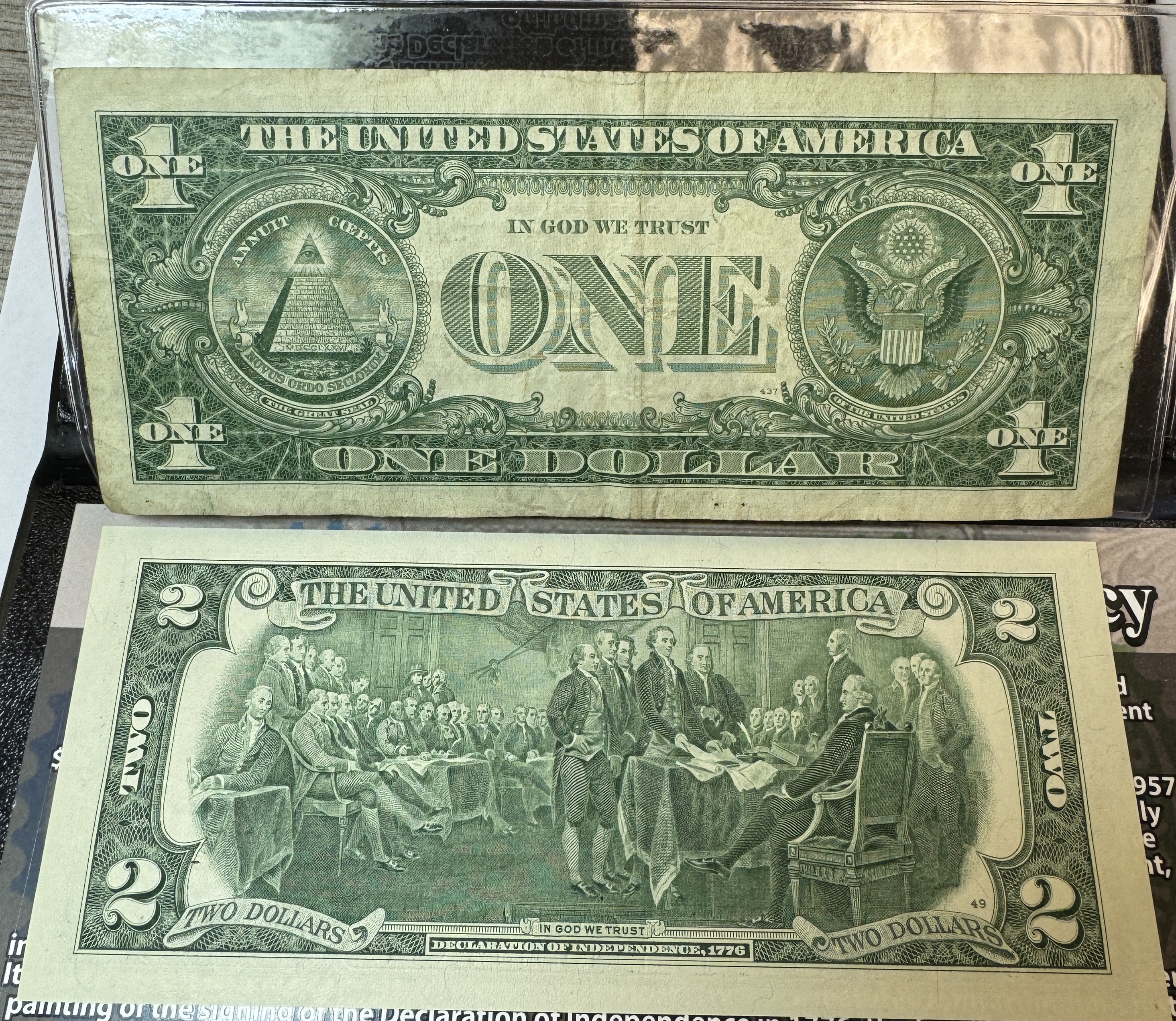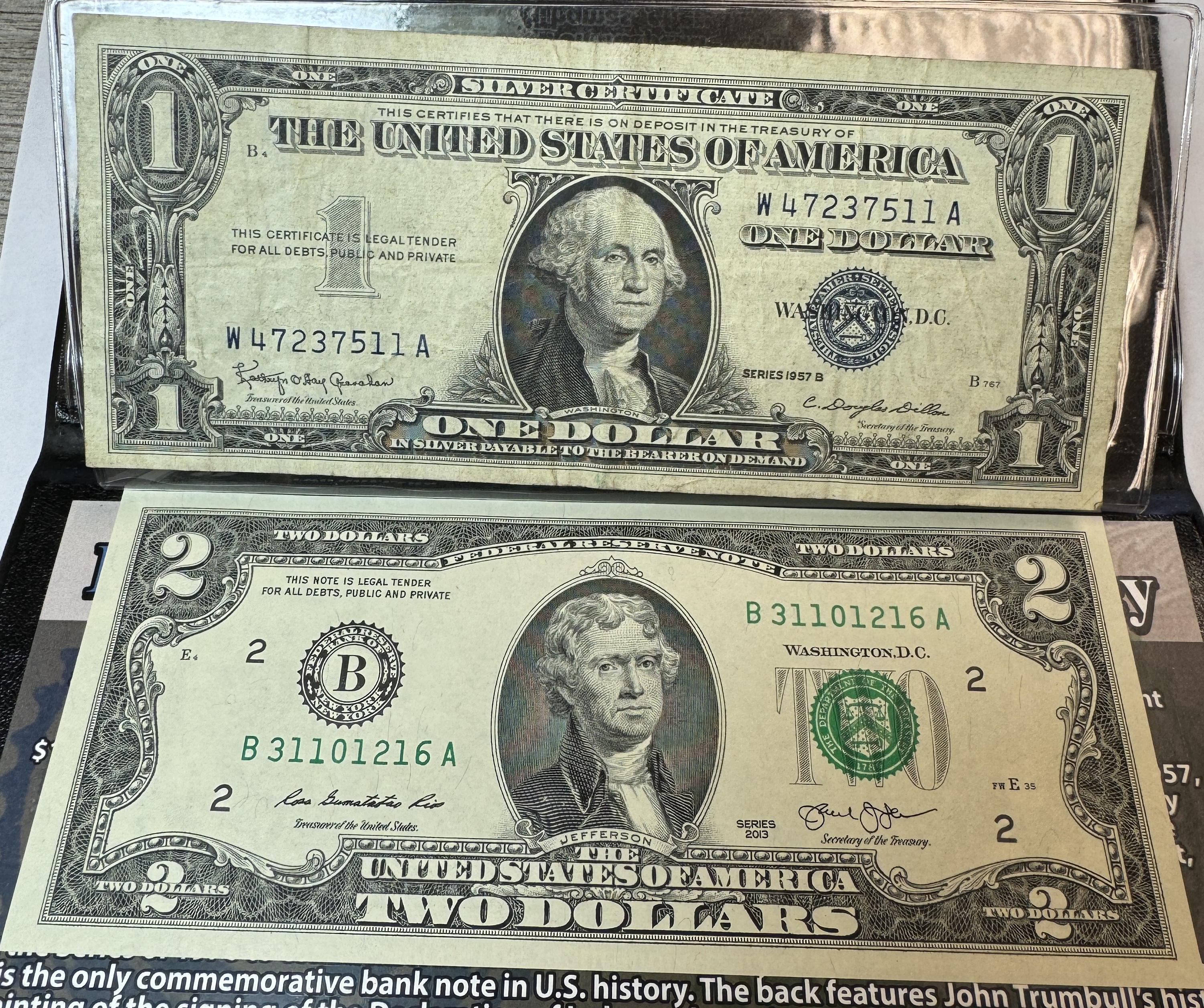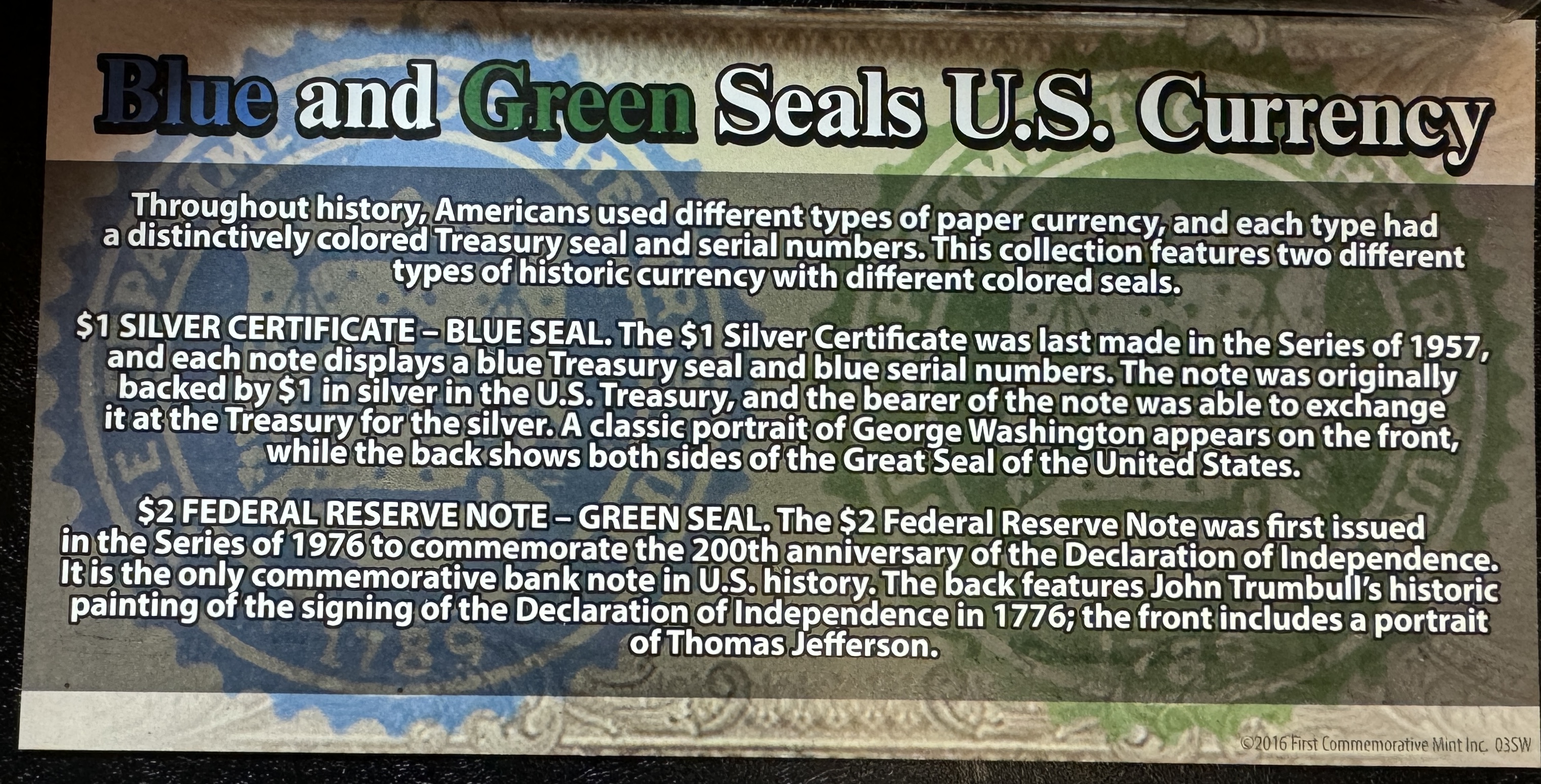 Blue and Green Seals U.S. Currency Set in Protective Folder/Wallet Issued by the First Commemorative Mint