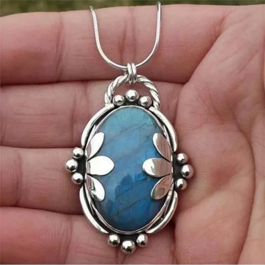 Boho Moonstone Leaf Wrapped Pendant Necklace