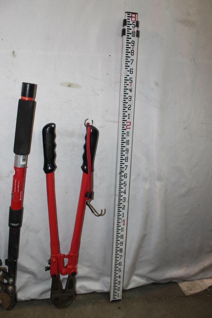 Bosch GR-8 C 8 Foot Telescoping Aluminium Leveling Rod, Bolt Cutter, Lopper: 4 Items
