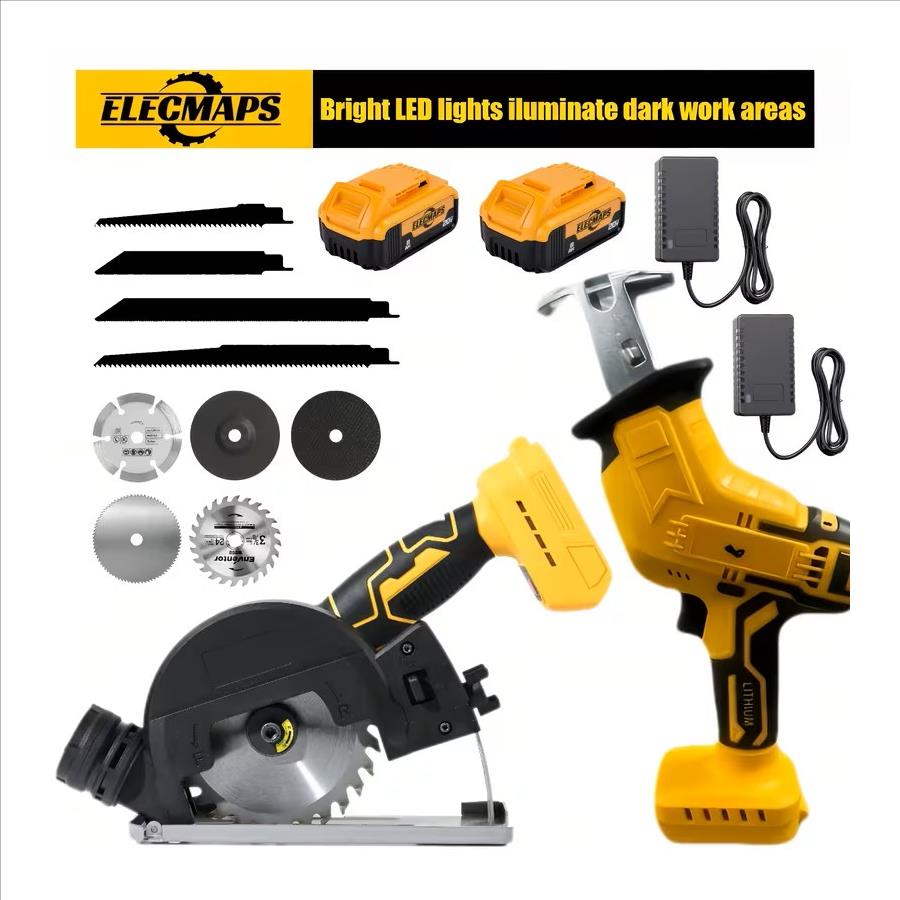 Brushless Dual Saw Kit, Compatible for Dewalt 20V Batteries, Includes Reciprocating Saw And 4-inch Circular Saw Mode. The Rotational Speed Is 3500 Rpm And 20000 Rpm. It Has 4-speed Adjustment Function, Suitable for Cutting Various Materials