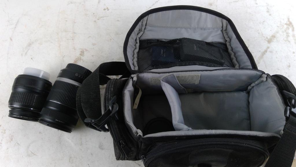 Get a great deal with this online auction presented by PropertyRoom.com on behalf of a law enforcement or public agency client. - Items include: Camera bag, Nikon DX 18-55mm camera lense, Canon EFS 55-250mm camera lense
