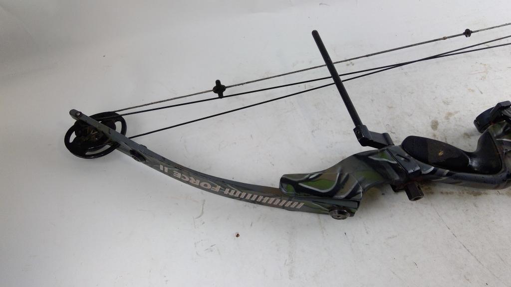 Get a great deal with this online auction presented by PropertyRoom.com on behalf of a law enforcement or public agency client. Model: Cobra Force 2 Color: Camo Bow Length: 42" Draw Length: Unknown Draw Weight: Unknown Draw: Right handed Accessories: None Cosmetic Condition: Good with scratches Shipment by PropertyRoom to any jurisdiction does not mean this item is legal in such jurisdiction. It is your responsibility to have knowledge of, obey, or comply with all applicable laws relating to this item.