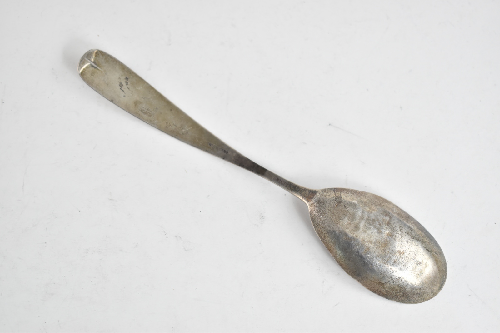 Item:  Coin Silver Ornate Engraved Floral Monogram Serving Spoon