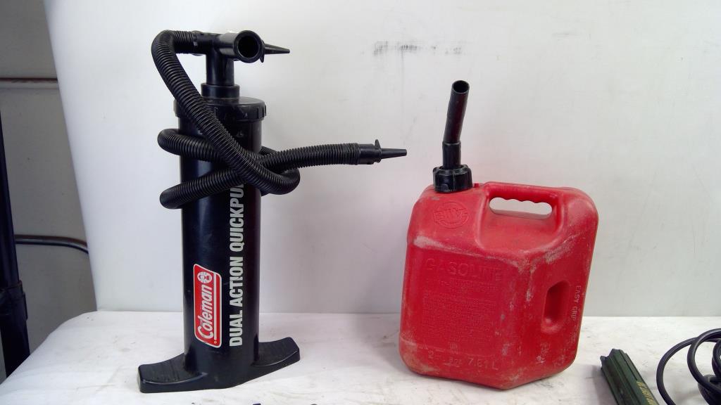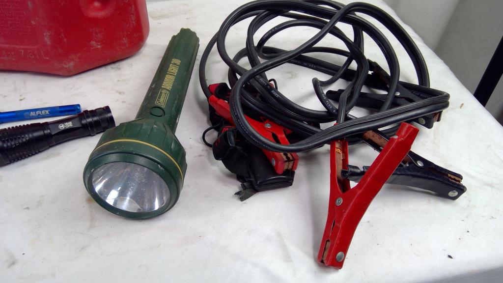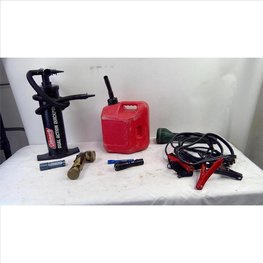 Coleman Dual Action Quickpump, Gas Canister, Jumper Cables, Flashlights, 9 Pieces