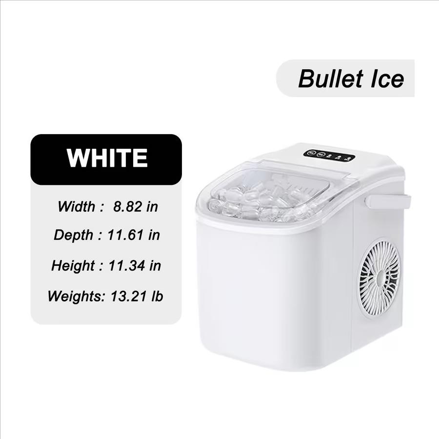 Countertop Ice Maker With Handle | Produces 26 Pounds Of Ice Within 24 Hours, Makes 9 Ice Cubes In 6 Minutes, Portable with Basket and Ice Scoop, Suitable for Malls/Warehouses/Offices