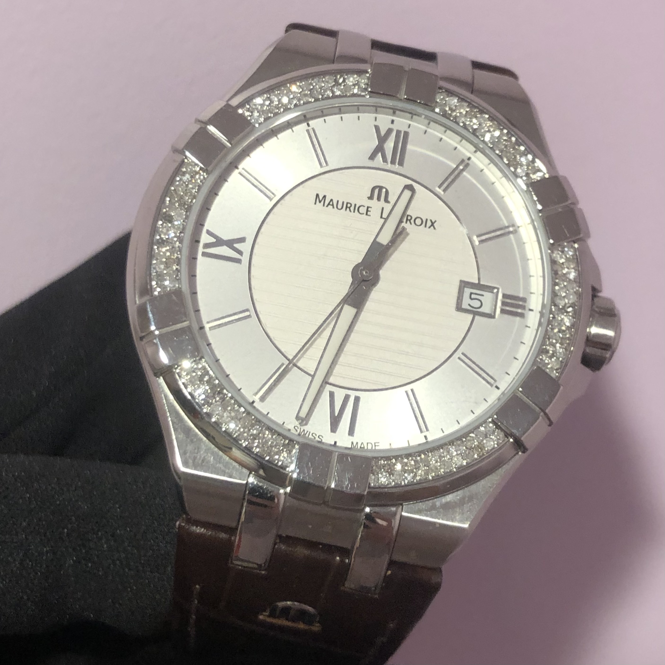 Custom Maurice Lacroix Aikon 42mm Men's Watch With Custom Diamond set Bezel.