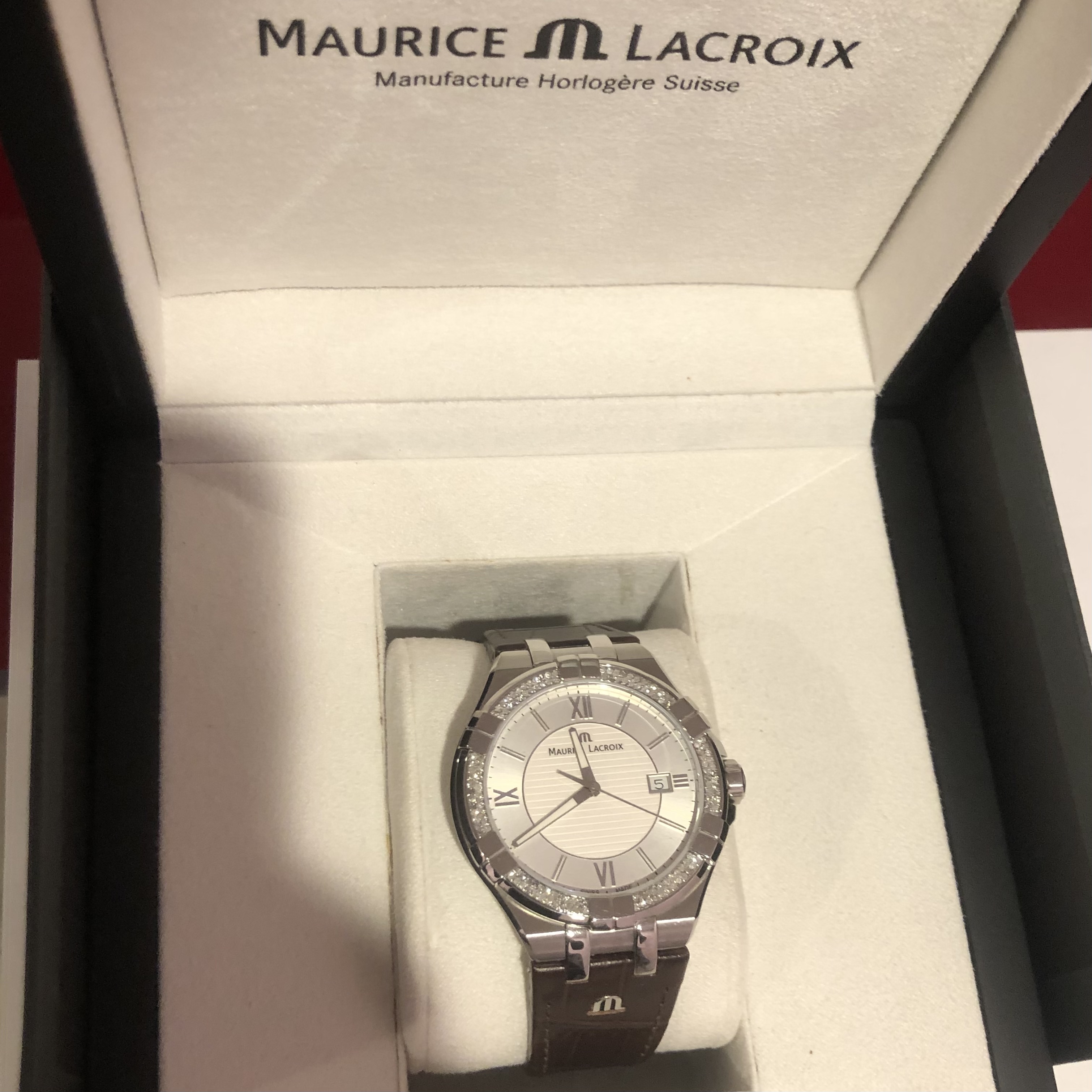 Custom Natural Diamond Maurice Lacroix AIKON AI1008 42mm Leather Men's Watch IGI Certified