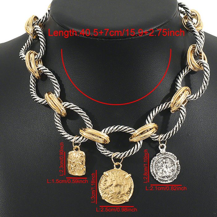 Designer Inspired 18k Two Tone Gold Overlay Large Coin Necklace