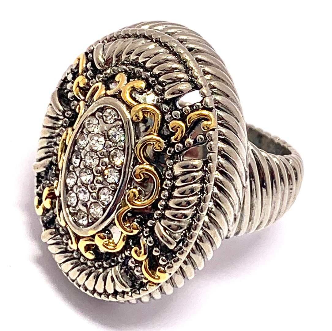 Designer Inspired 18k White & Yellow Gold Overlay 0.50ctw Diamonique Diamond Ring