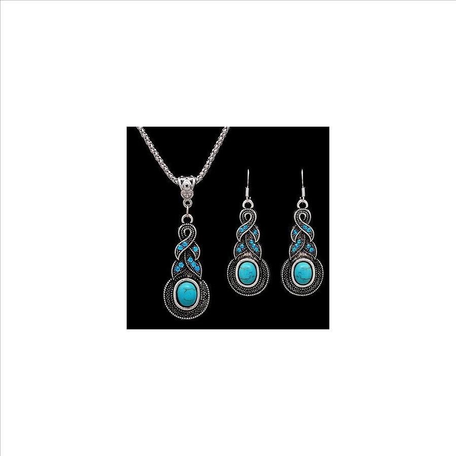 Designer Inspired 21.00ctw Turquoise & Blue Topaz 18k White Gold Overlay Necklace & Earrings Set