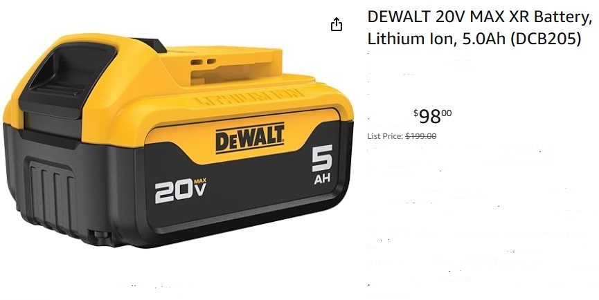• DEWALT 20V Battery XR Lithium Ion pack provides up to 60% more capacity than standard 20V MAX battery pack (DCB200)