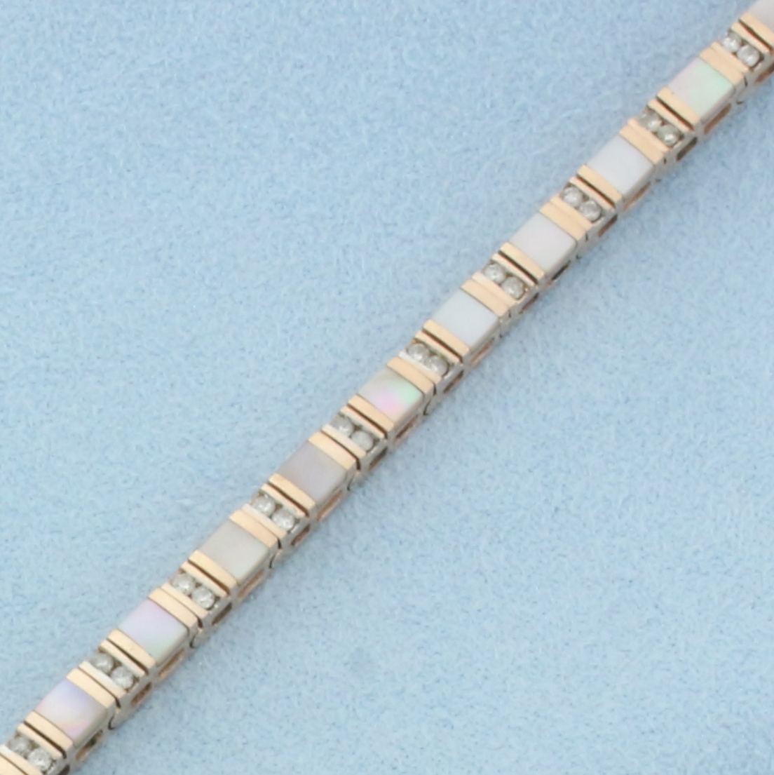 Diamond and Mother of Pearl Inlay Tennis Bracelet in 14k Rose Gold