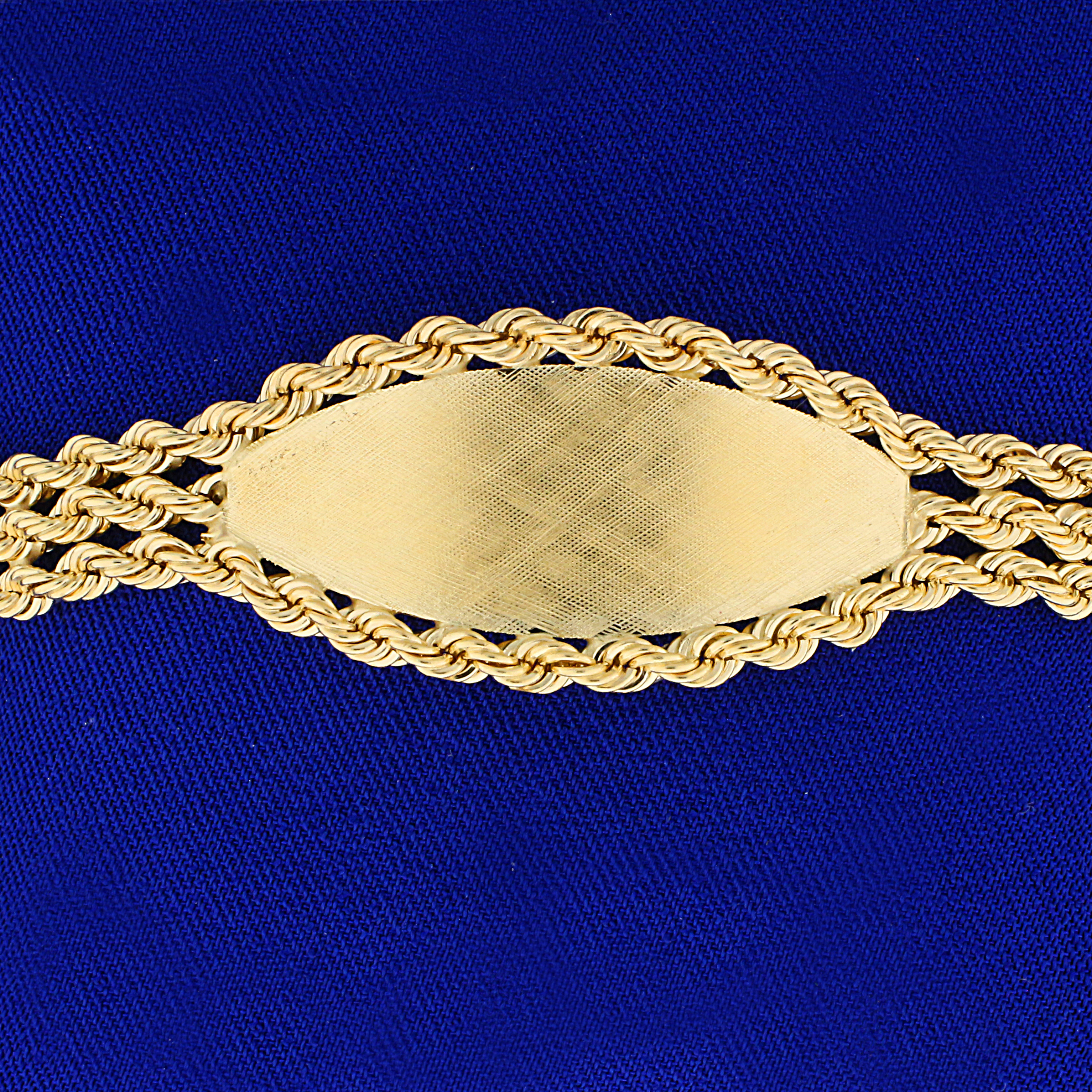 Engravable Rope Chain Style ID Bracelet in 14K Yellow Gold