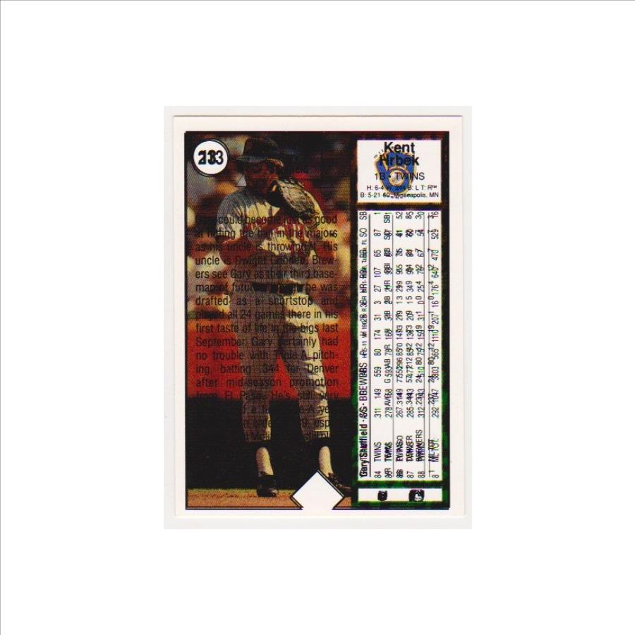 PropertyRoom.com's trusted merchant, Sports Collectibles, presents this online auction for the above Error - Gary Sheffield 1989 Upper Deck Rookie w/ Double Print Back, Kent HrBek Front.