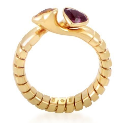 Estate Bvlgari 18k Yellow Gold Citrine & Tourmaline Heart Band / Ring sz 6 3/4