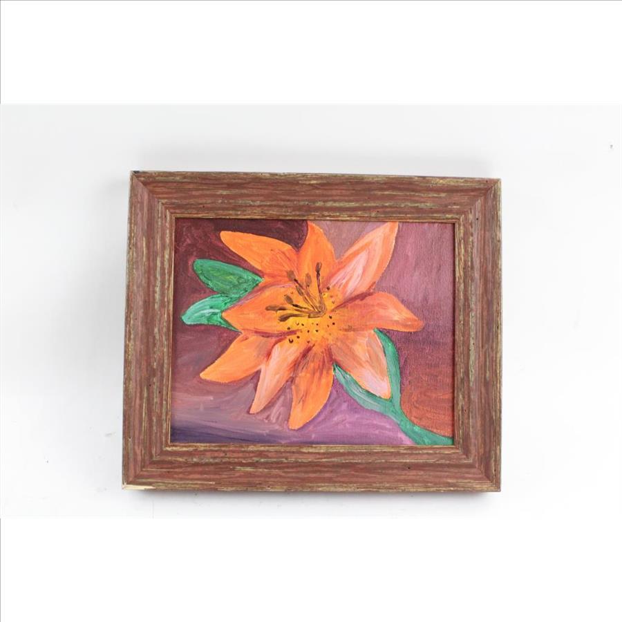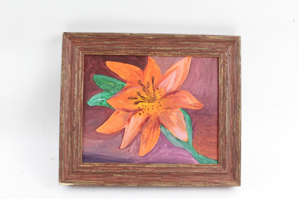 Get a great deal with this online auction for a framed artwork presented by Property Room on behalf of a law enforcement or public agency client. - Hand painted flower in wooden frame