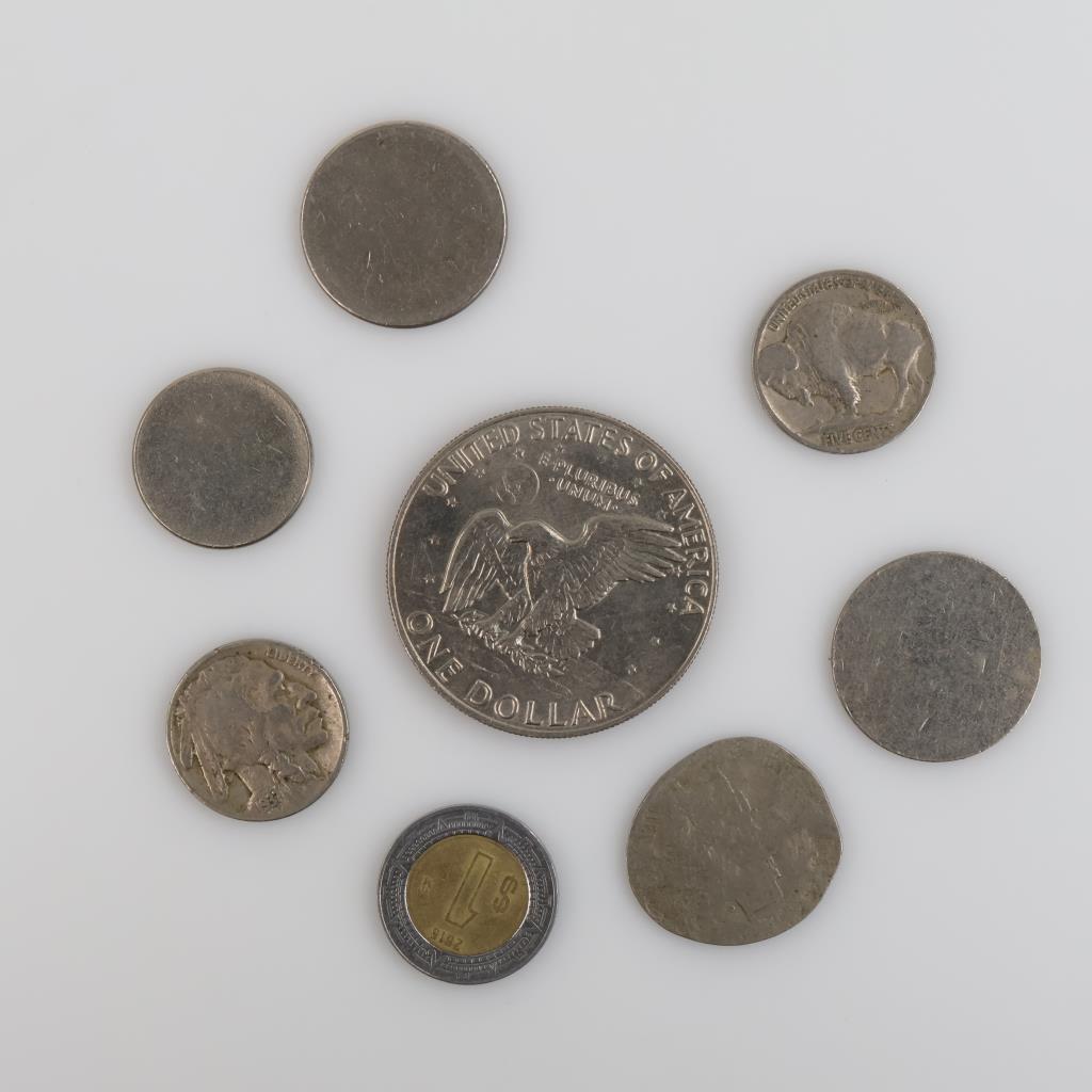 Foreign - US Currency And Tokens, 8 Pieces