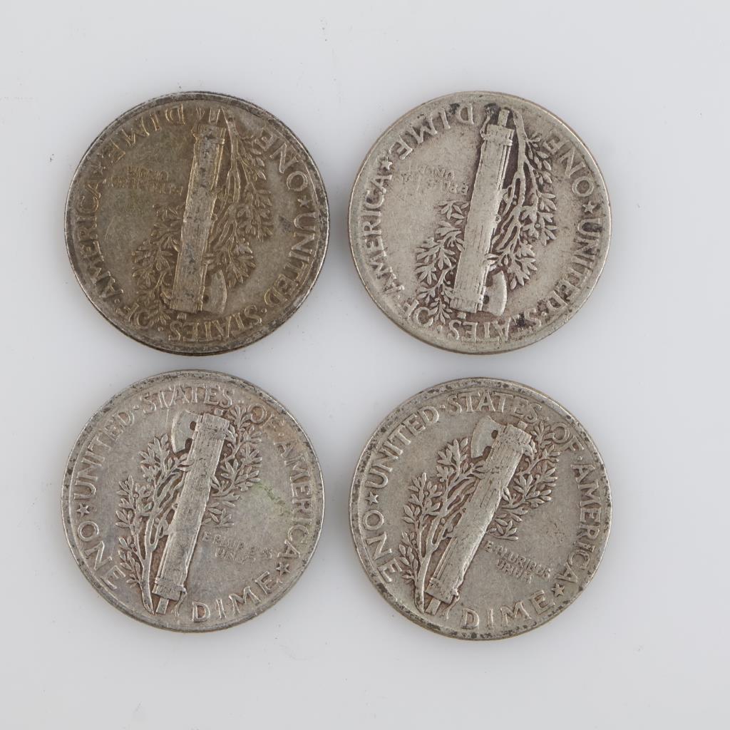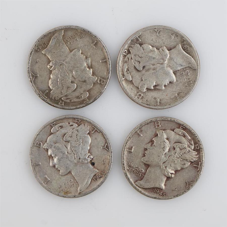 Four 1945 US Mercury Silver Dimes