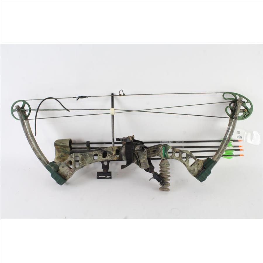 Get a great deal with this online auction for a bow presented by Property Room on behalf of law enforcement or public agency client. Model: Unknown Color: Camo Bow Length: 37" Draw Length: 28 Draw Weight: Unknown Draw: Right Handed Accessories: arrows, quiver Cosmetic Condition: Good, with scratches, scuffs, dirt, nicks and wear Shipment by PropertyRoom to any jurisdiction does not mean this item is legal in such jurisdiction. It is your responsibility to have knowledge of, obey, or comply with all applicable laws relating to this item.