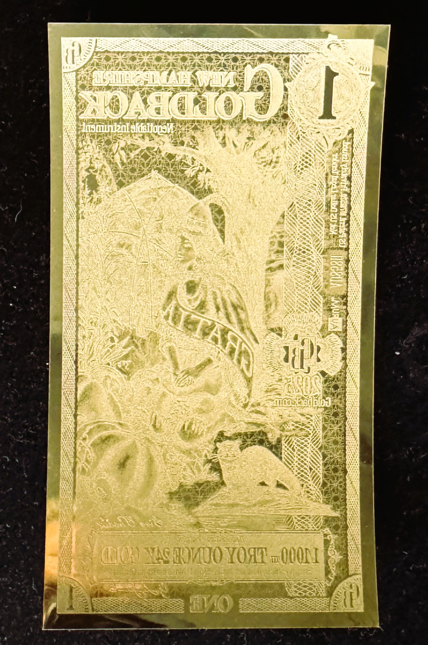 GOLD, 1 NEW HAMPSHIRE GOLDBACK, GOLD FOIL NOTE, 24kt 1/1000 .999 24K FINE GOLD, CAN BE USED AS LEGAL TENDER