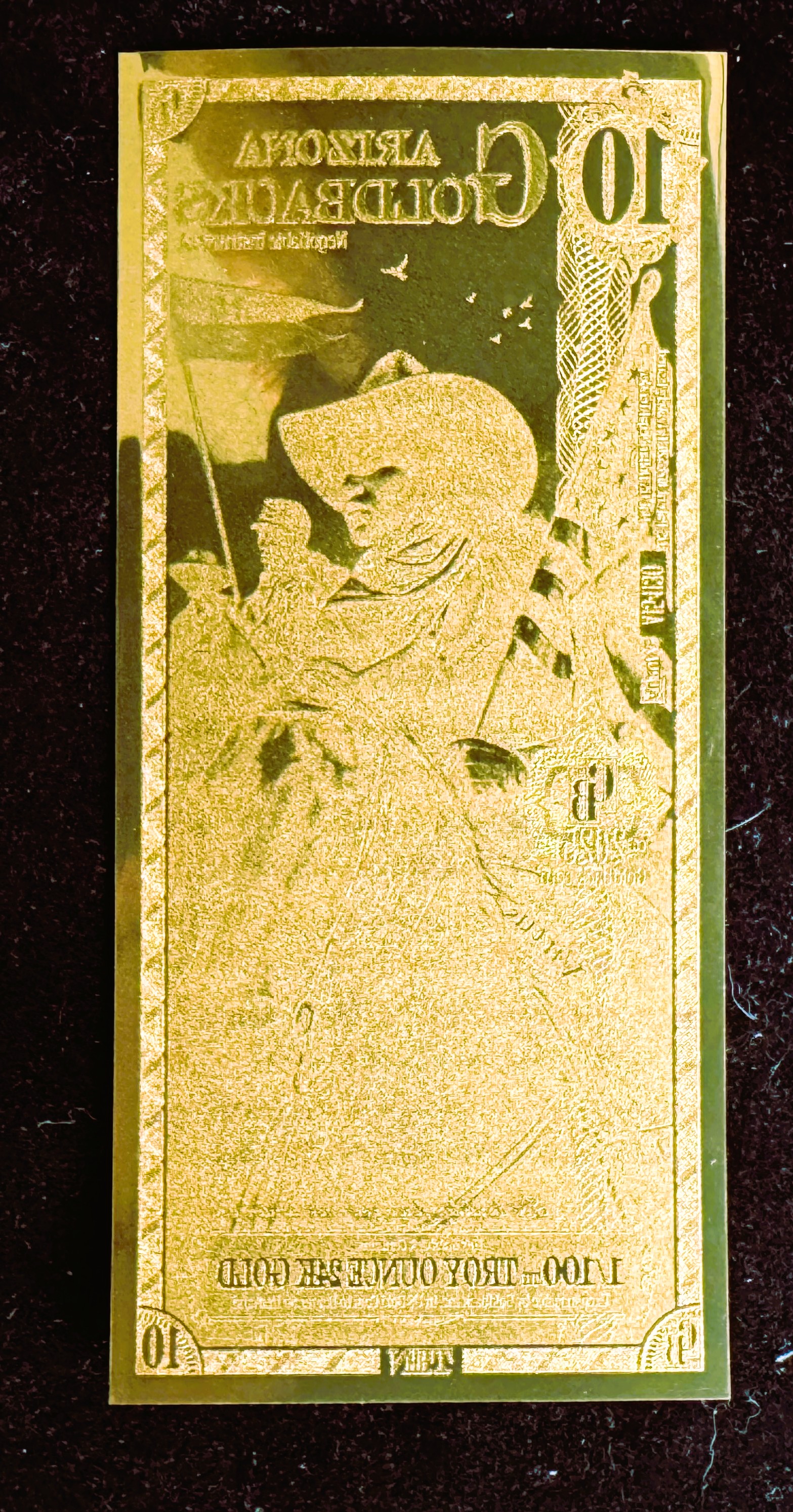 GOLD, 10 ARIZONA GOLDBACK, GOLD FOIL NOTE, 1/100th TROY OUNCE 24KT FINE GOLD, CAN BE USED AS LEGAL TENDER