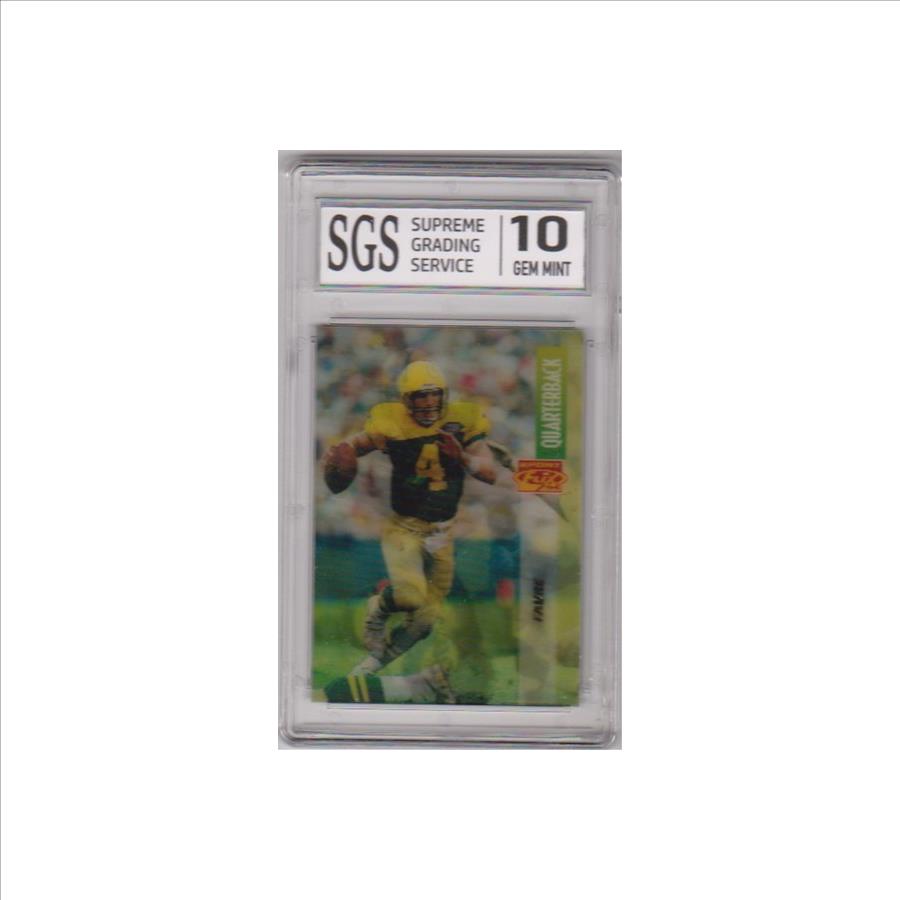 This is a 1995 Sport Flix Brett Favre #76 card that has been graded a Gem Mint 10 by SGS.  This is a sharp graded card of this NFL Hall of Famer.