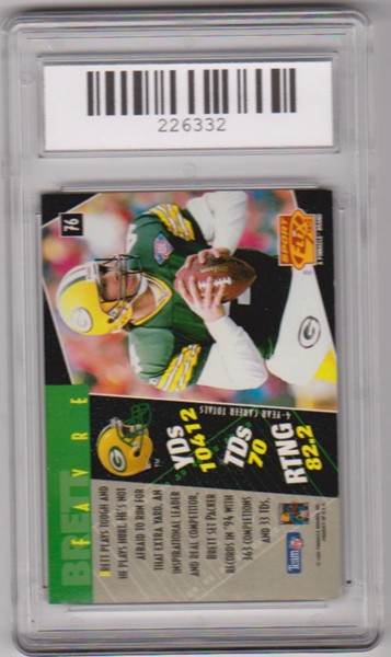 PropertyRoom.com's trusted merchant, Sports Collectibles, presents this online auction for the above Graded Gem Mint 10 - Brett Favre 1995 Sport Flix #76 Card.