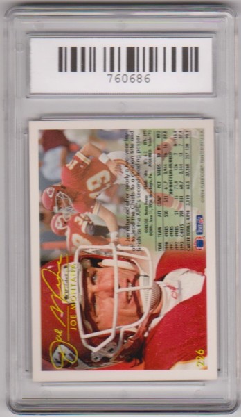 PropertyRoom.com's trusted merchant, Sports Collectibles, presents this online auction for the above Graded Gem Mint 10 - Joe Montana 1994 Fleer #226 Card.