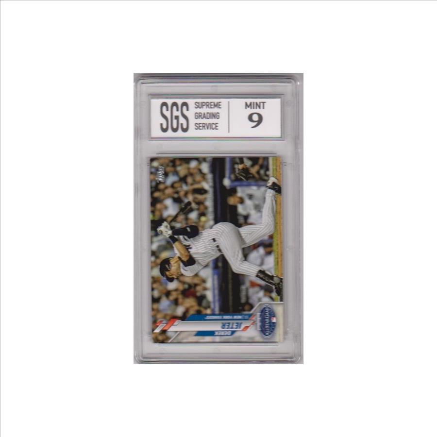 This is a Derek Jeter 2020 Topps Update #U-257 card that has been graded a Mint 9 by SGS.  The holder has some minor surface wear, but overall this is a sharp graded card of this retired baseball Hall Of Famer.