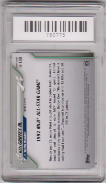 PropertyRoom.com's trusted merchant, Sports Collectibles, presents this online auction for the above Graded Mint 9 - Ken Griffey, Jr. 2020 Topps Update #U-190 Card.
