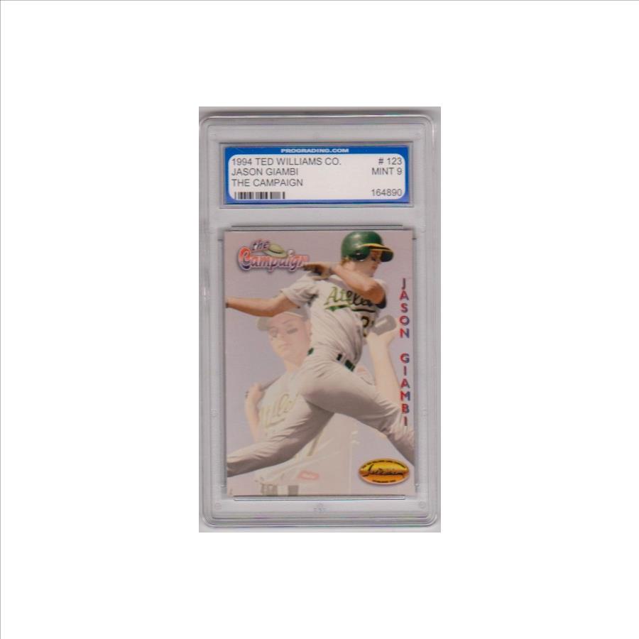 PropertyRoom.com's trusted merchant, Sports Collectibles, presents this online auction for the above Graded Mint 9 Rookie - Jason Giambi 1994 Ted Williams Co. Minor League #123 Card.